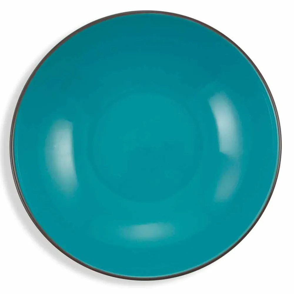 Eleganz und Leichtigkeit zeichnen die flachen Teller und Obstteller aus feinem weißem Porzellan aus, auf denen der Aufkleber angebracht ist. Das glasierte Steinzeug der sechs Suppenteller hingegen bringt Funktionalität auf den Tisch: Dick und widerstandsfähig, hält es die Wärme heißer erster Gänge wie Suppen und Suppen aufrecht und erleichtert deren Service. Die emaillierte Oberfläche verstärkt die Farben des Tisches.
