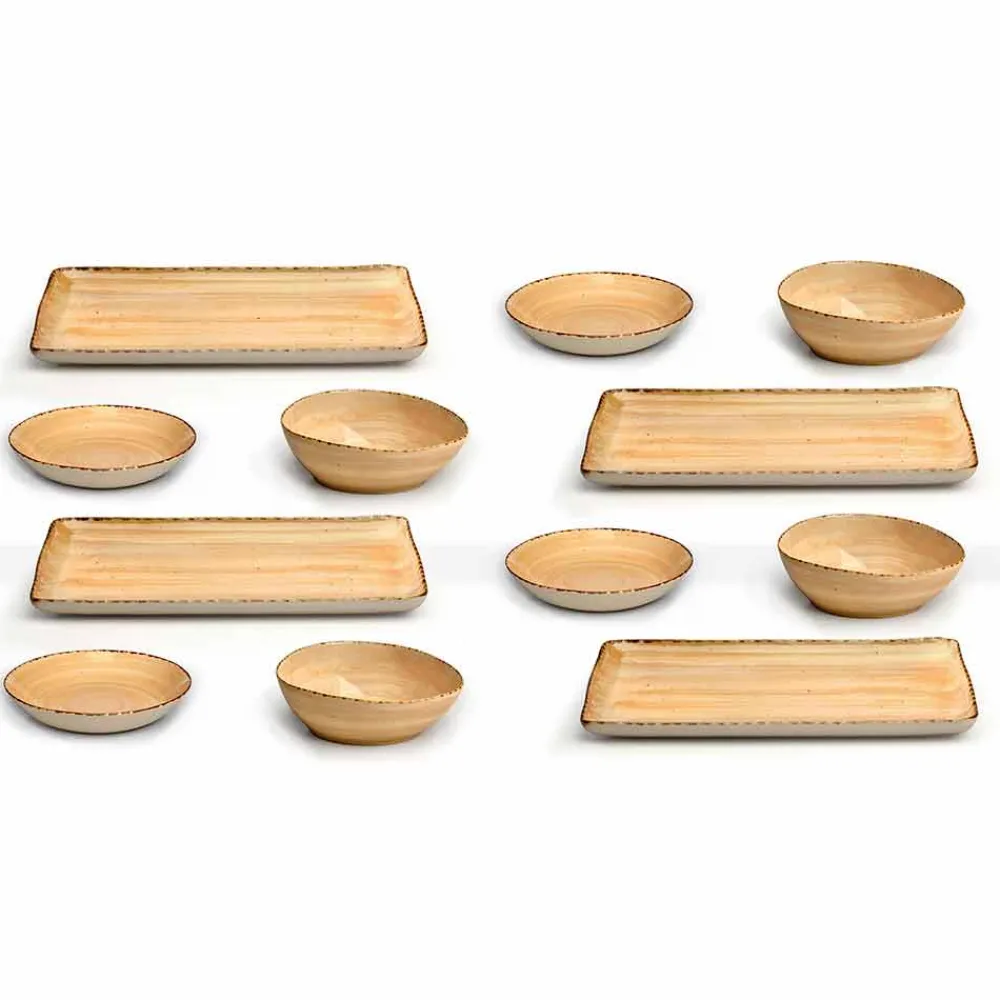 Service von 12 modernen rechteckigen und runden Steinzeugplatten mit elegantem und originellem Design.