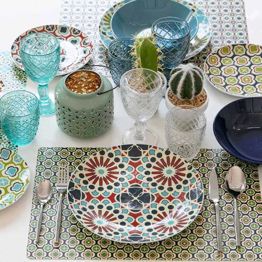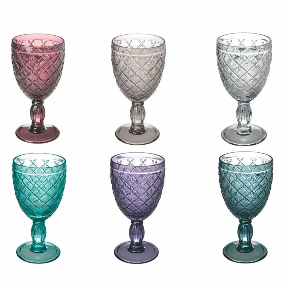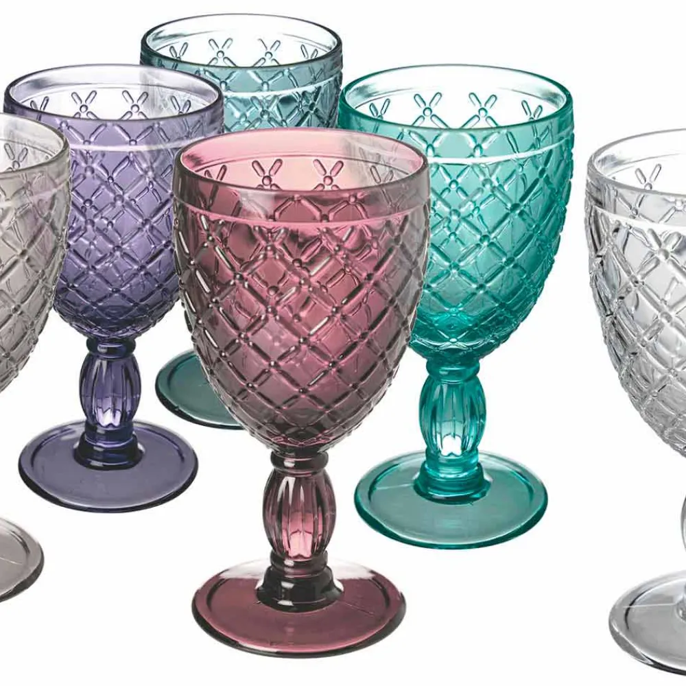 Auf der Höhe eines eleganten Tisches und in der Lage, auf einem informellen Set zu glänzen, beleuchten die Bechergläser jede Mahlzeit dank der kostbaren farbigen Schnitzereien , die wie kleine Diamanten jedem Getränk einen Wert verleihen.