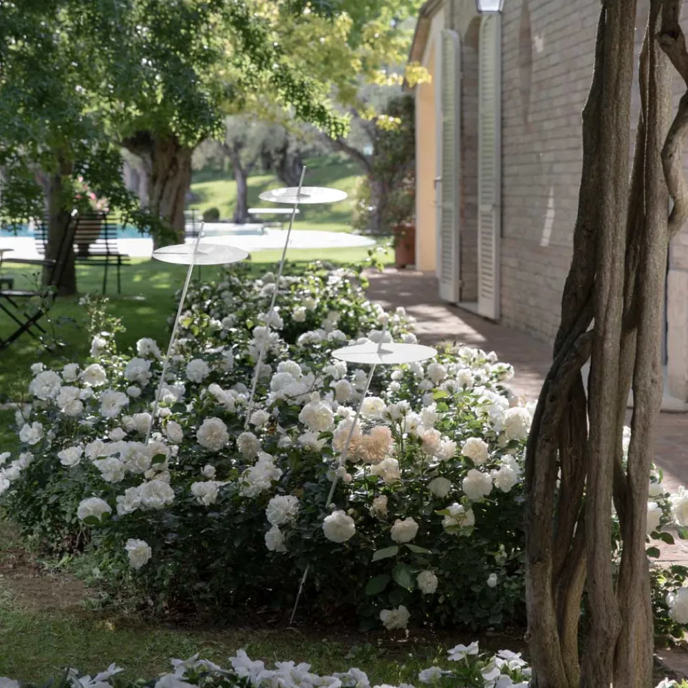 Design-Stehlampe für den Außenbereich aus weißem Aluminium in Blattform, 3 Größen made in Italy.