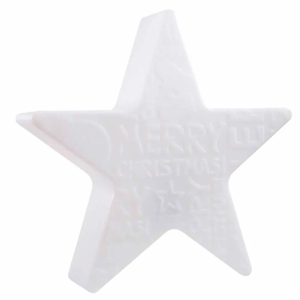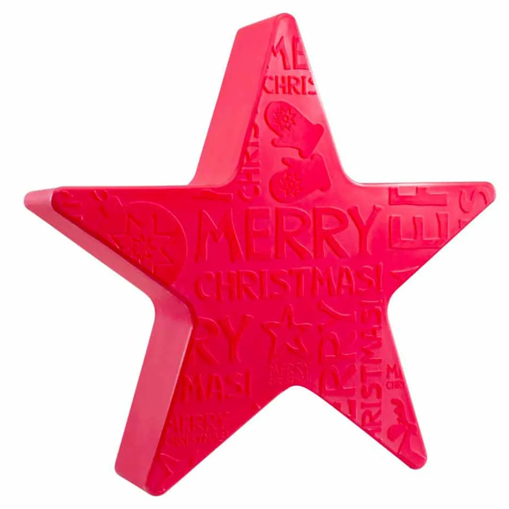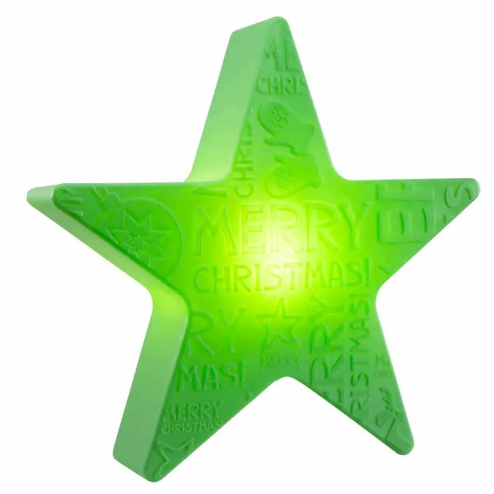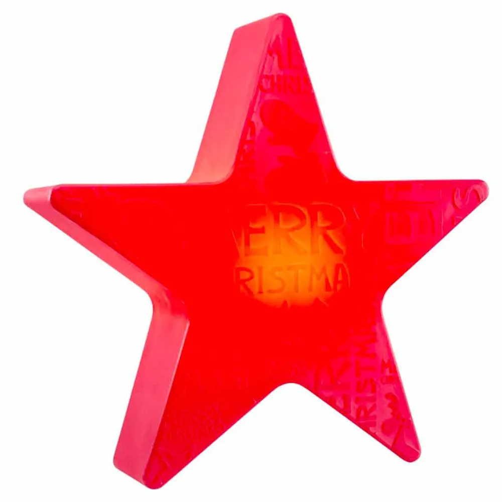 Diese Tischlampe für den Innen- und Außenbereich zeichnet sich durch ein auffälliges sternförmiges Design mit reliefiertem Schriftzug zum Thema Weihnachten auf der Vorderseite aus, während die Rückseite glatt bleibt. Ein dekorativer Lichtpunkt, der die Seele und das Herz erfreut und eine funkelnde und moderne Atmosphäre schafft, ideal für die Weihnachtszeit .