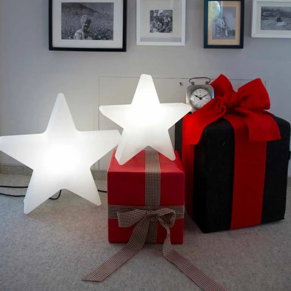 Dekorative Steh- oder Tischlampe mit modernem Design in Sternform aus weißem oder rotem Polyethylen in 4 Größen.