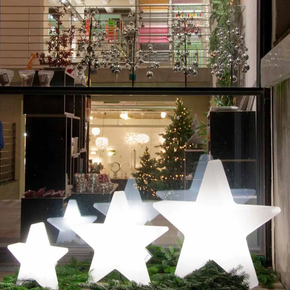 Diese Stehlampe für drinnen oder draußen zeichnet sich durch ein attraktives und modernes Design mit Sternform aus . Dieser dekorative Lichtpunkt erfreut die Seele und das Herz und schafft eine funkelnde und moderne Atmosphäre, die besonders in der Weihnachtszeit ideal ist.