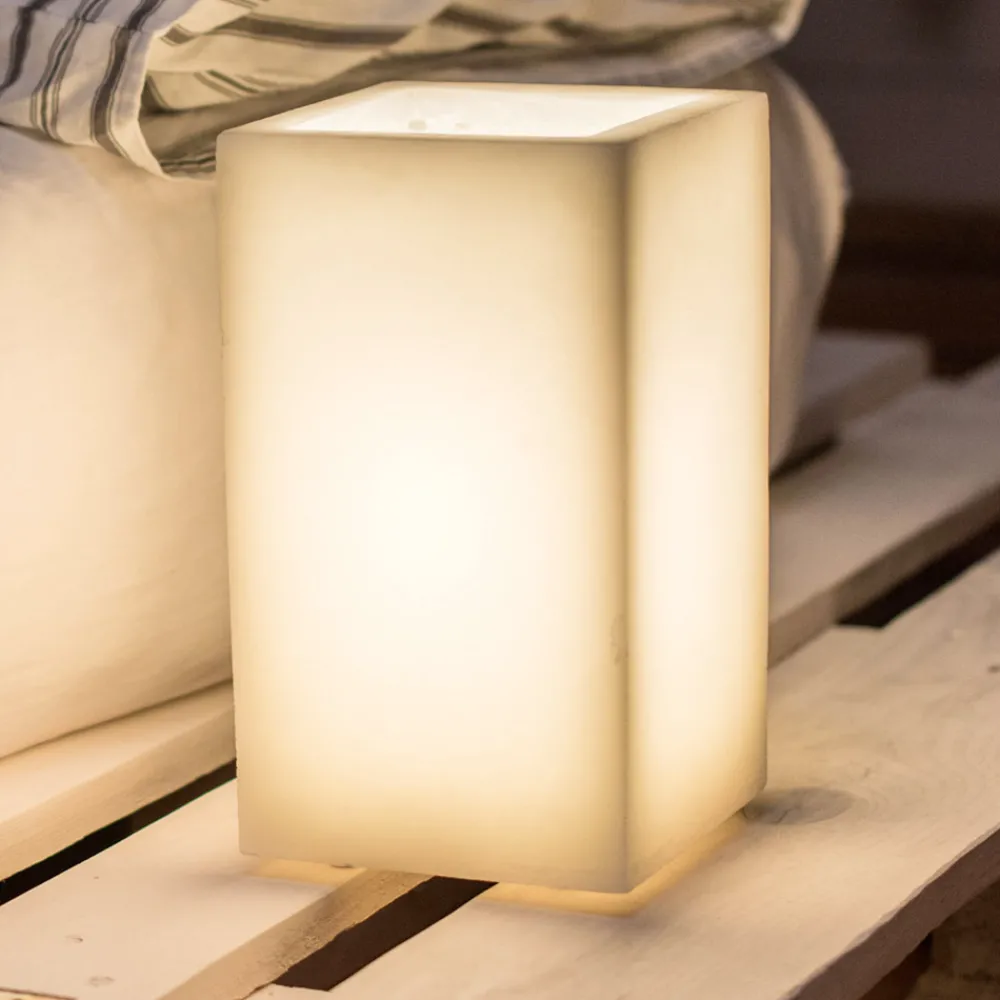Moderne quadratische Lampe aus duftendem Wachs in verschiedenen Made in Italy-Farben erhältlich.