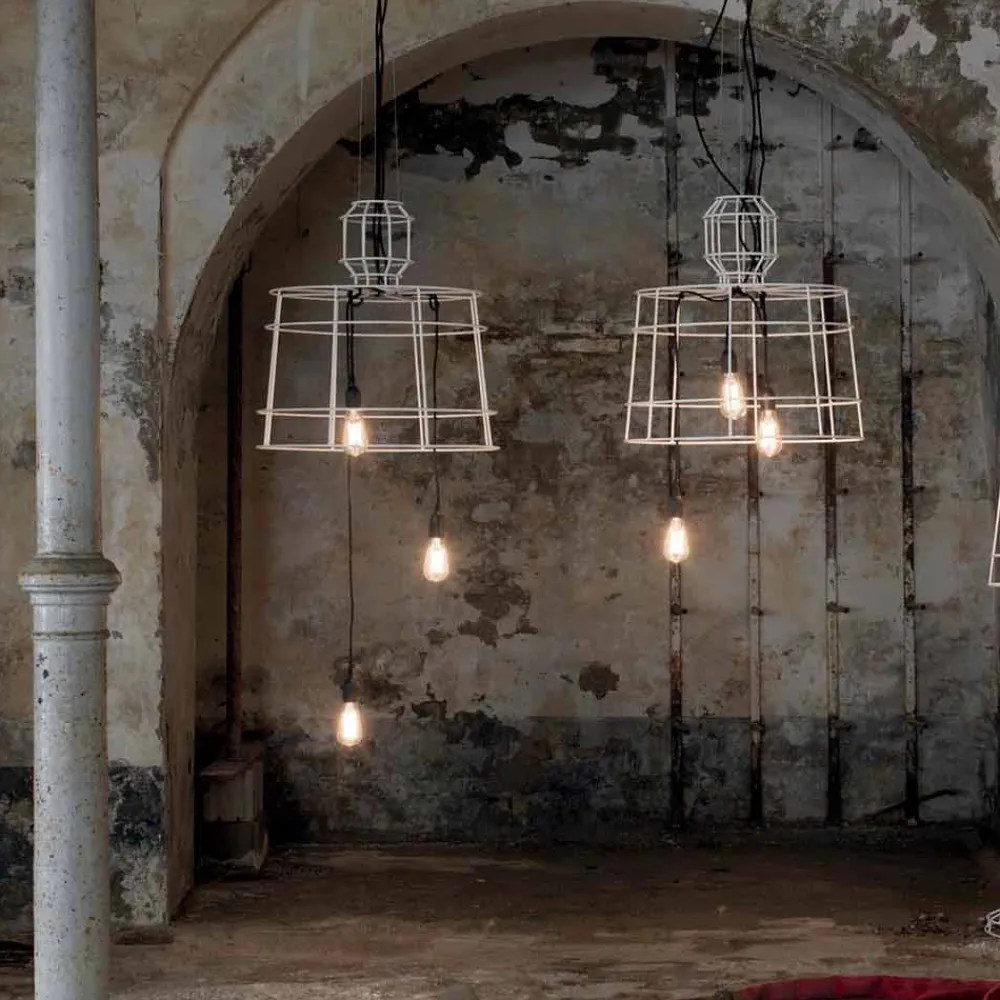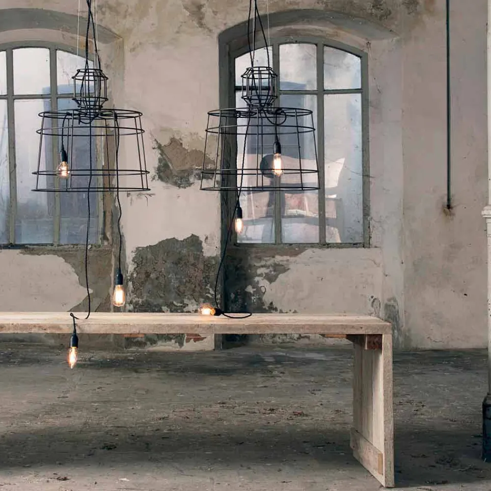 Diese originale und einzigartige Pendelleuchte verfügt über ein Design aus Metall mit geformten und geschweißten Garteneisen. Die Besonderheit besteht in seinem essentiellen Skelett, das einem industriellen und minimalistischen Stil Leben einhaucht, der bereit ist, eine wichtige Säule in der Zielumgebung zu werden.