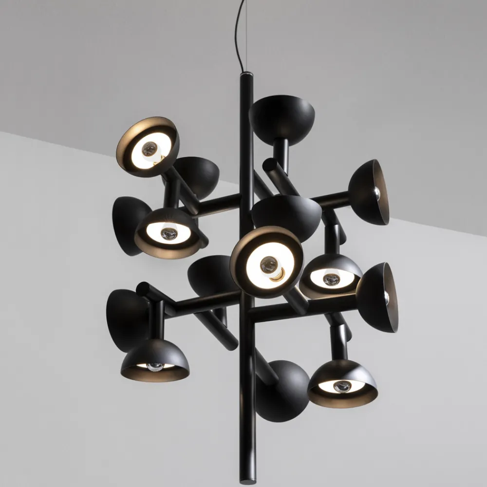 Pendelleuchte im weißen oder schwarzen Aluminiumdesign mit 16 Leuchten made in Italy.