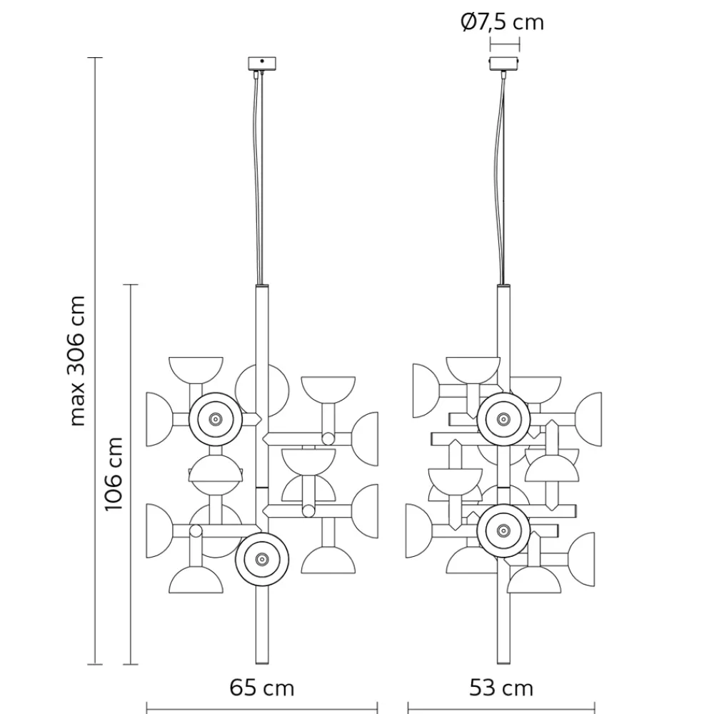 Die Leuchte besteht aus einer Aluminiumstruktur in zwei Ausführungen für ein ganz italienisches Design, das durch unkonventionelle Experimente und die kontinuierliche Suche zwischen Tradition und Moderne in der Lage ist, zu überraschen, zu wagen und zu begeistern, so dass Sie Ihre Emotionen auf originelle und persönliche Weise ausdrücken können dekorativer Lichteinsatz.