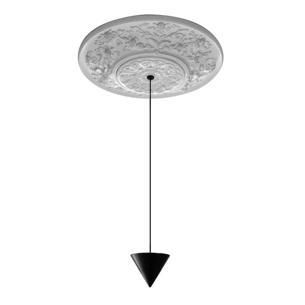 Pendelleuchte aus weißem Gips und schwarzem Aluminium mit Kegel, 2 Größen hergestellt in Italien.