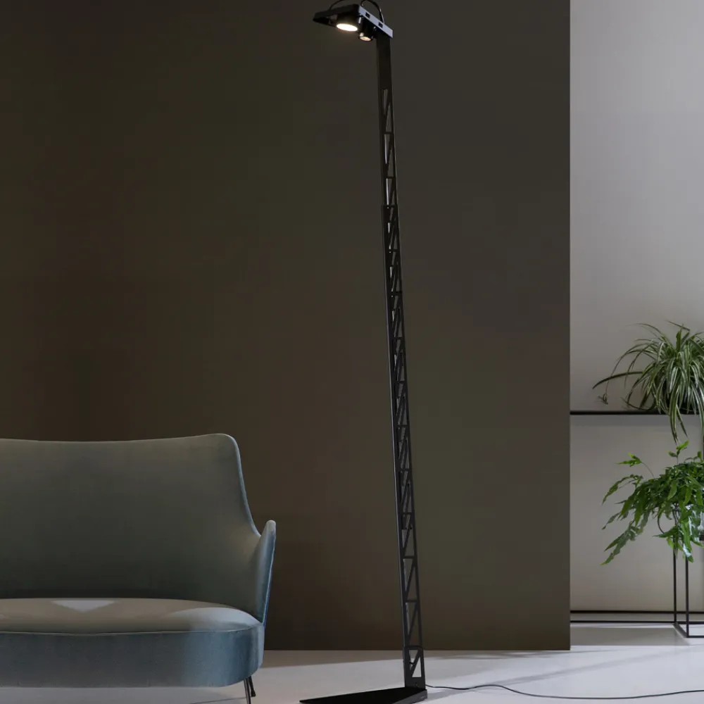 Ausziehbare Stehleuchte aus mattschwarzem Aluminium, modernes Leiterdesign, made in Italy.