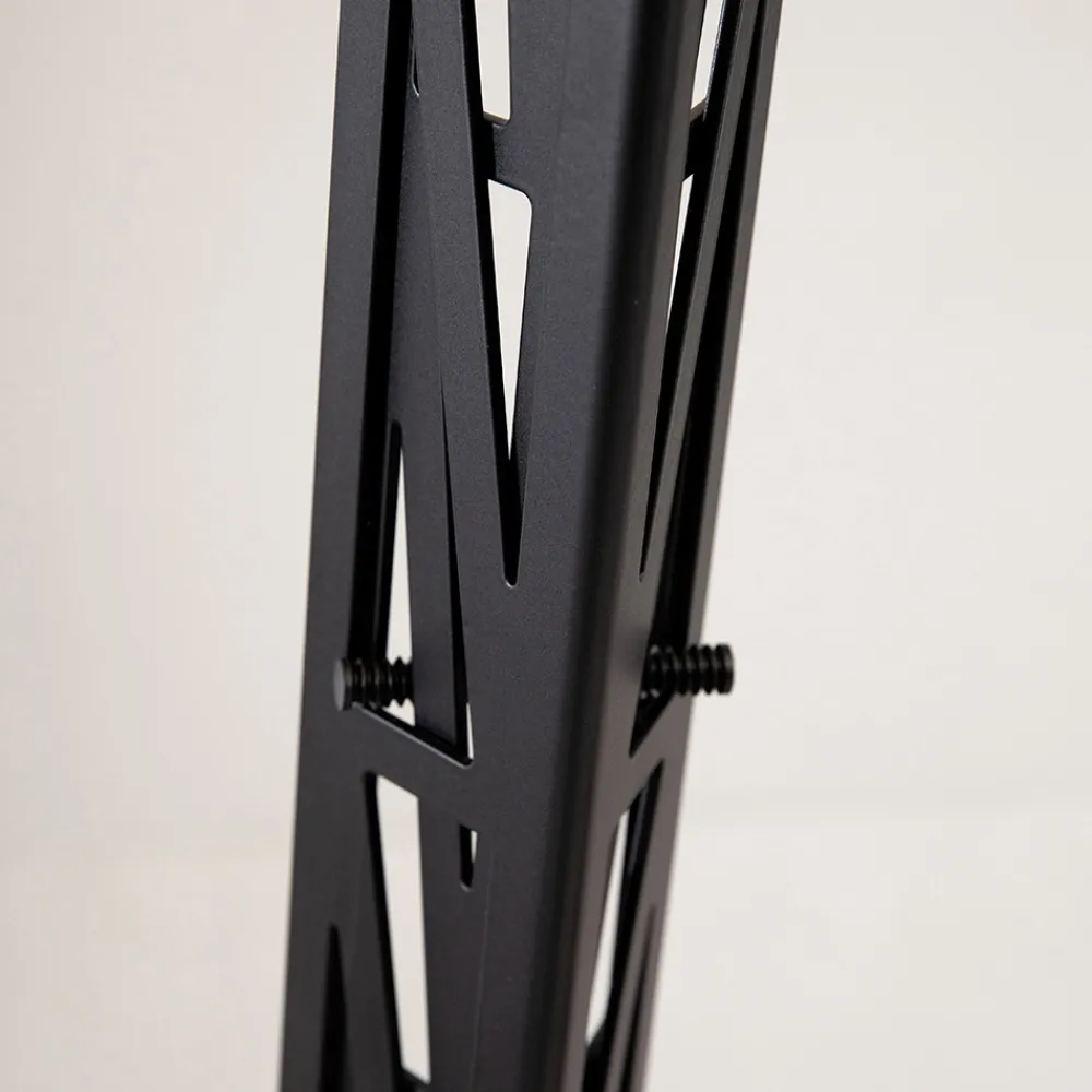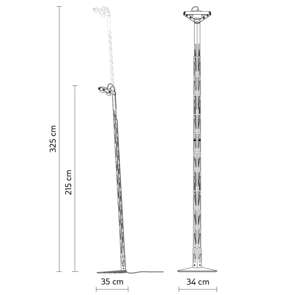 Diese originelle und einzigartige Stehlampe zeichnet sich durch ein modernes und industrielles Design aus und zeichnet sich durch ihre Fähigkeit aus, sich in die Höhe auszudehnen.