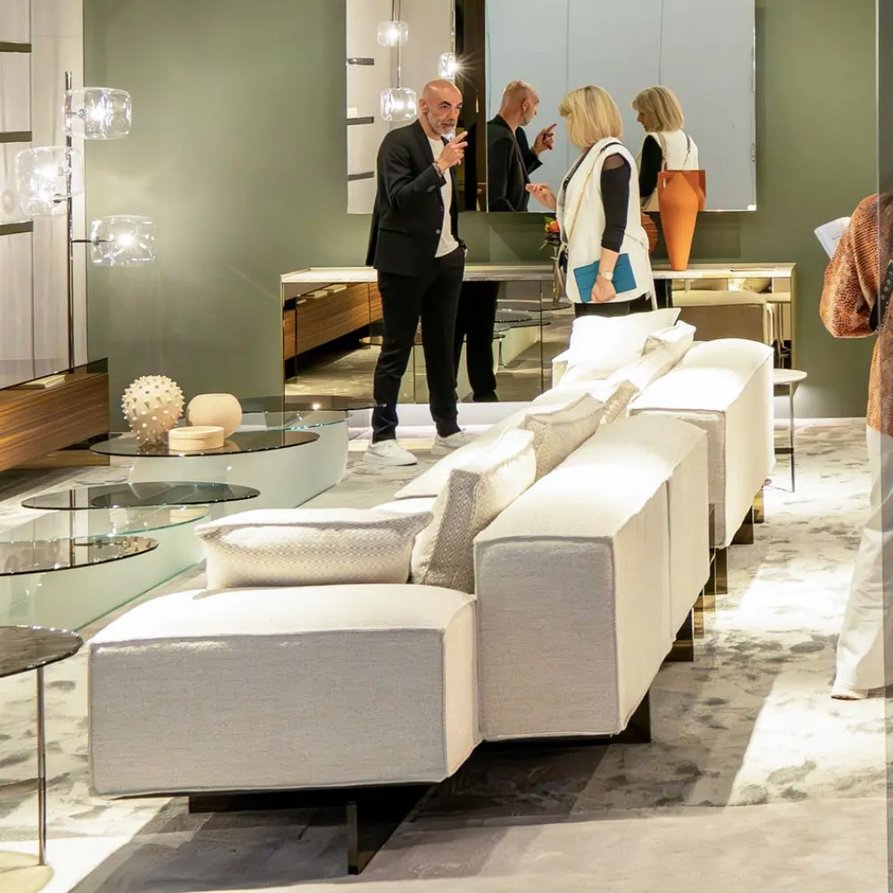 Design Stehleuchte aus poliertem Metall mit abgerundeten Glaswürfeln Made in Italy.