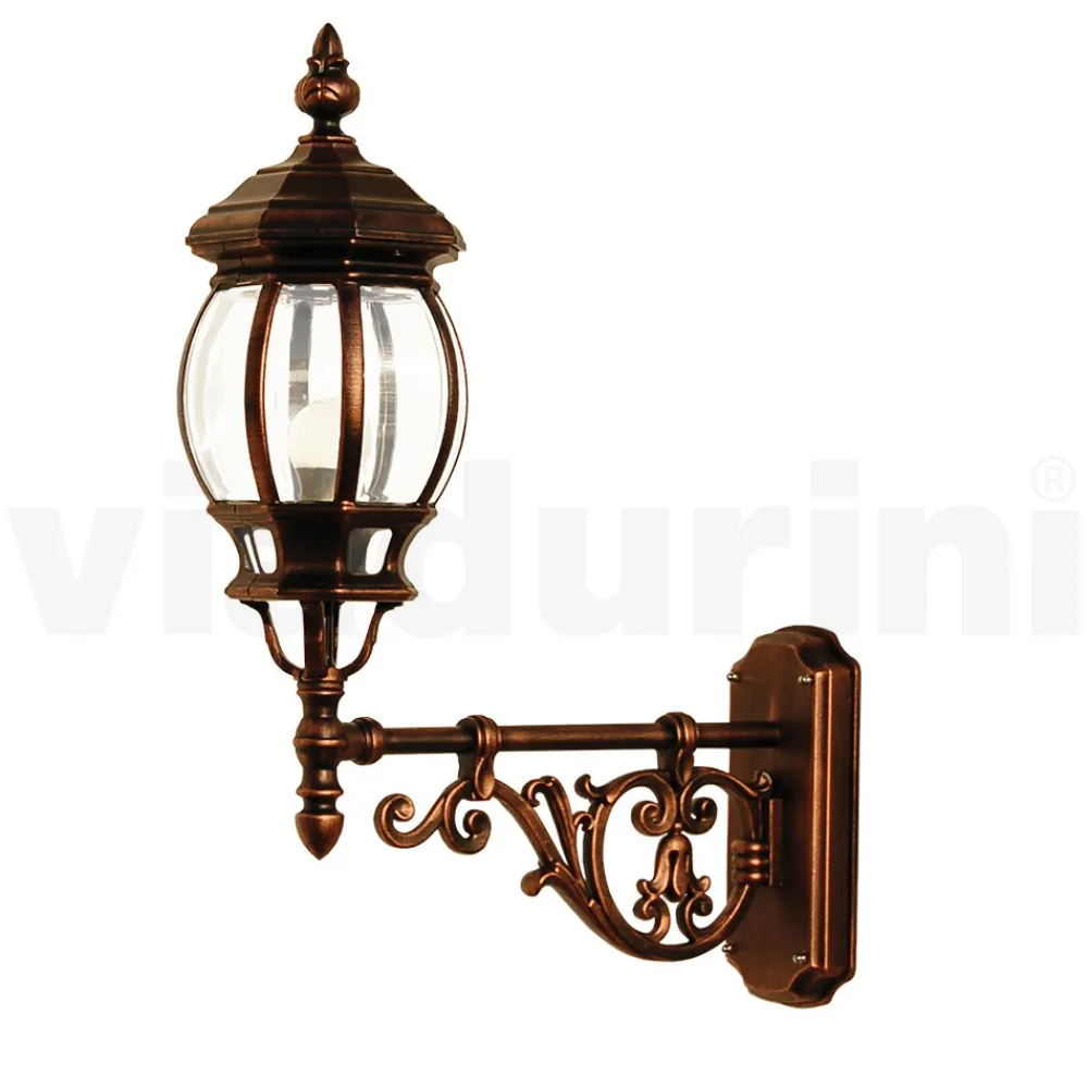 Außenwandleuchte, 100 % Made in Italy, mit Struktur aus Aluminiumdruckguss und transparentem Polycarbonat- Diffusor. Komplett mit Edelstahlschrauben. Elegante Merkmale und raffinierte Formen erwecken ein Einrichtungsaccessoire mit Vintage-Persönlichkeit und klassischem Stil zum Leben, das sich durch raffinierte und exklusive Oberflächen auszeichnet. Ideal für die Beleuchtung von Außenbereichen wie Alleen, Gärten, Gehwegen, aber auch von Außenräumen wie Bars und Restaurants.