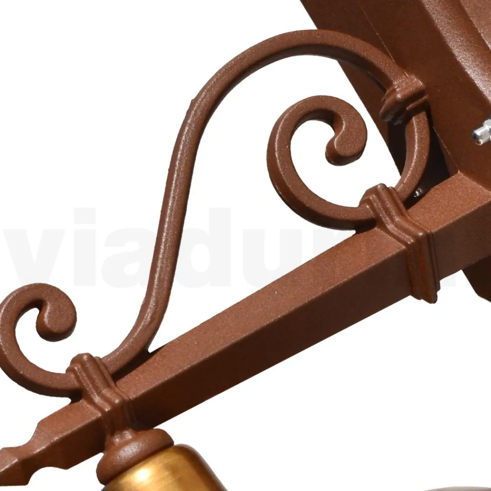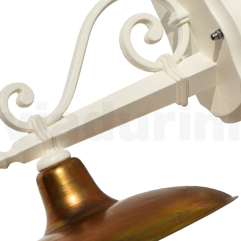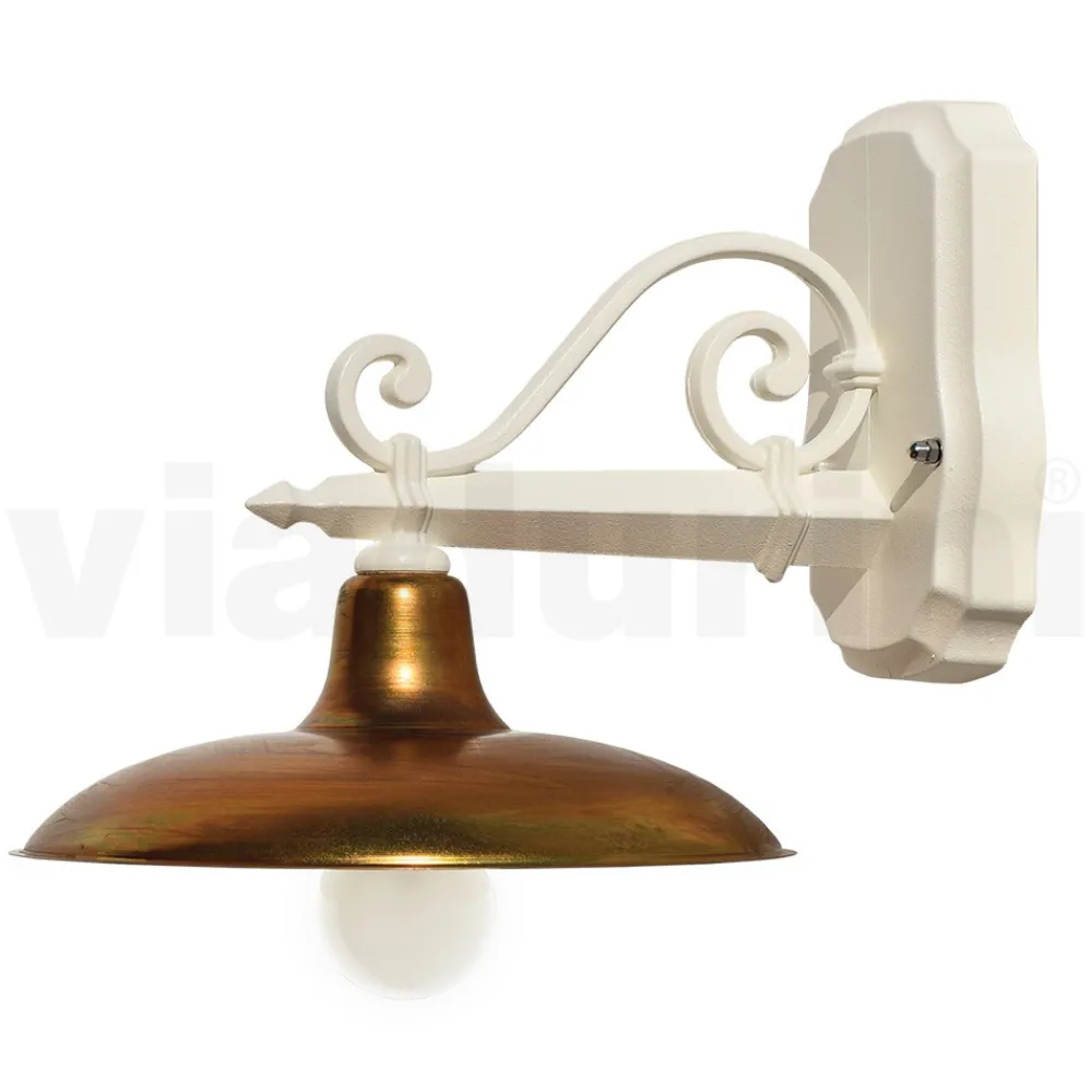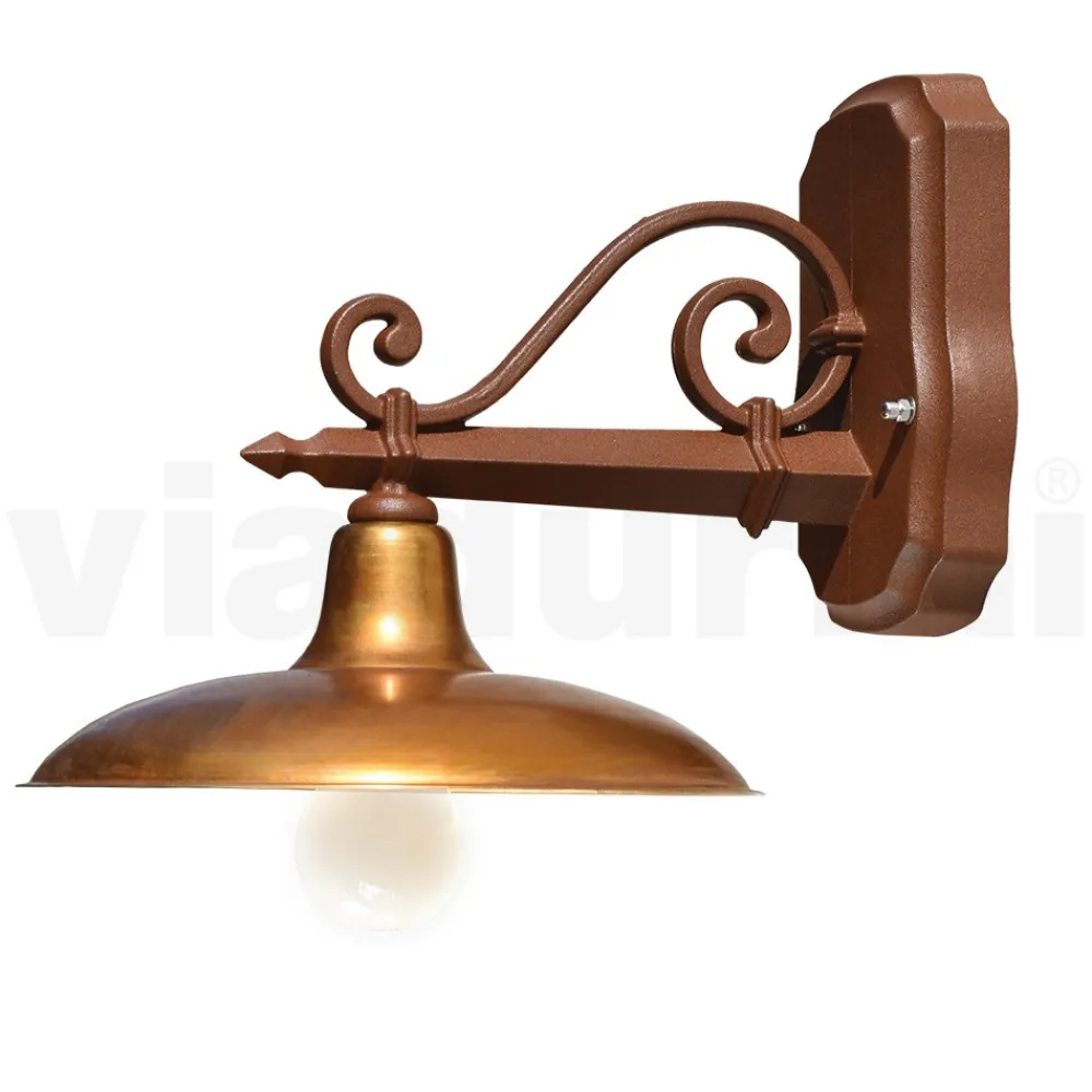 Wandleuchte komplett in Italien hergestellt mit Struktur aus Aluminiumdruckguss und Diffusor aus natürlichem Messing (Durchmesser 260 mm). Komplett mit Edelstahlschrauben und Silikondichtung für besseren Schutz. Ein faszinierender und raffinierter Stil, der von Vintage-Formen und -Merkmalen geprägt ist, die seine Einzigartigkeit unterstreichen und ihn perfekt für diejenigen machen, die klassische und raffinierte Einrichtung lieben. Ideal für Außenbereiche wie Gärten, Innenhöfe, Alleen und Gehwege, aber auch für gewerbliche Räume wie Bars und Restaurants.