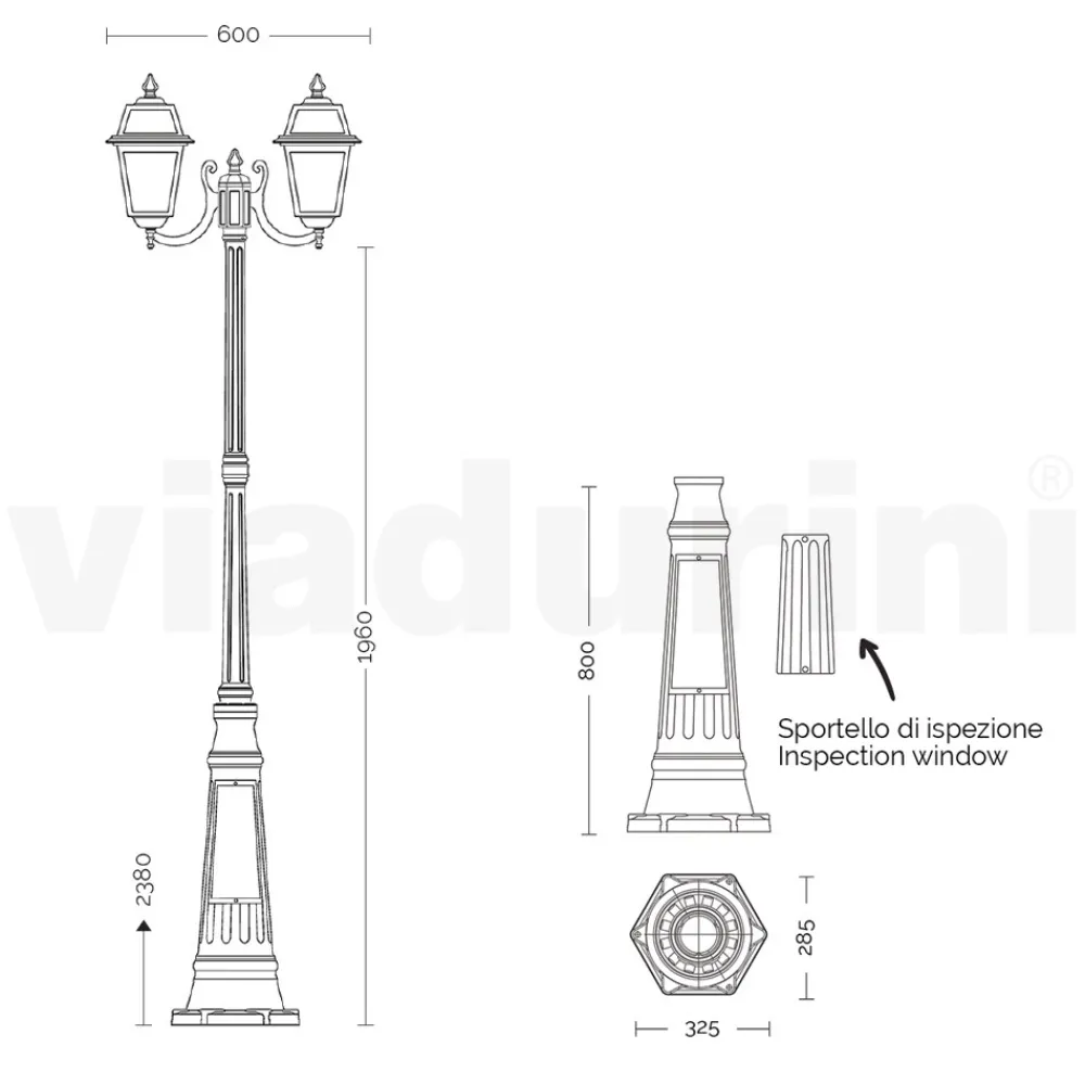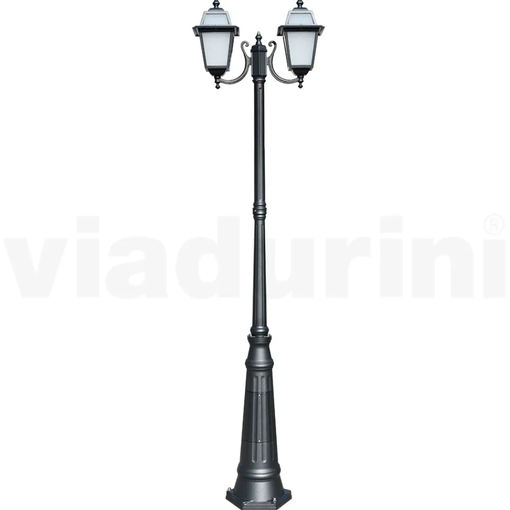 Diese Straßenlaterne aus Aluminiumguss mit Anthrazit -Finish ist eine stilvolle Wahl für jeden Außenbereich. Mit einem klassischen und eleganten Design zeichnet sie sich durch handwerkliche Details aus, die eine Atmosphäre vergangener Zeiten heraufbeschwören. Die 2 Laternen, mit Liebe zum kleinsten Detail, verbreiten ein warmes und weiches Licht, ideal, um einen beleuchteten Weg in Ihrem Garten zu schaffen oder einen Entspannungsbereich im Freien stilvoll abzugrenzen. Solidität und Schönheit vereinen sich in dieser Straßenlaterne, die auf Langlebigkeit und Witterungsbeständigkeit ausgelegt ist. Elegant und funktional wird sie die leuchtende Signatur Ihres Außenbereichs sein.