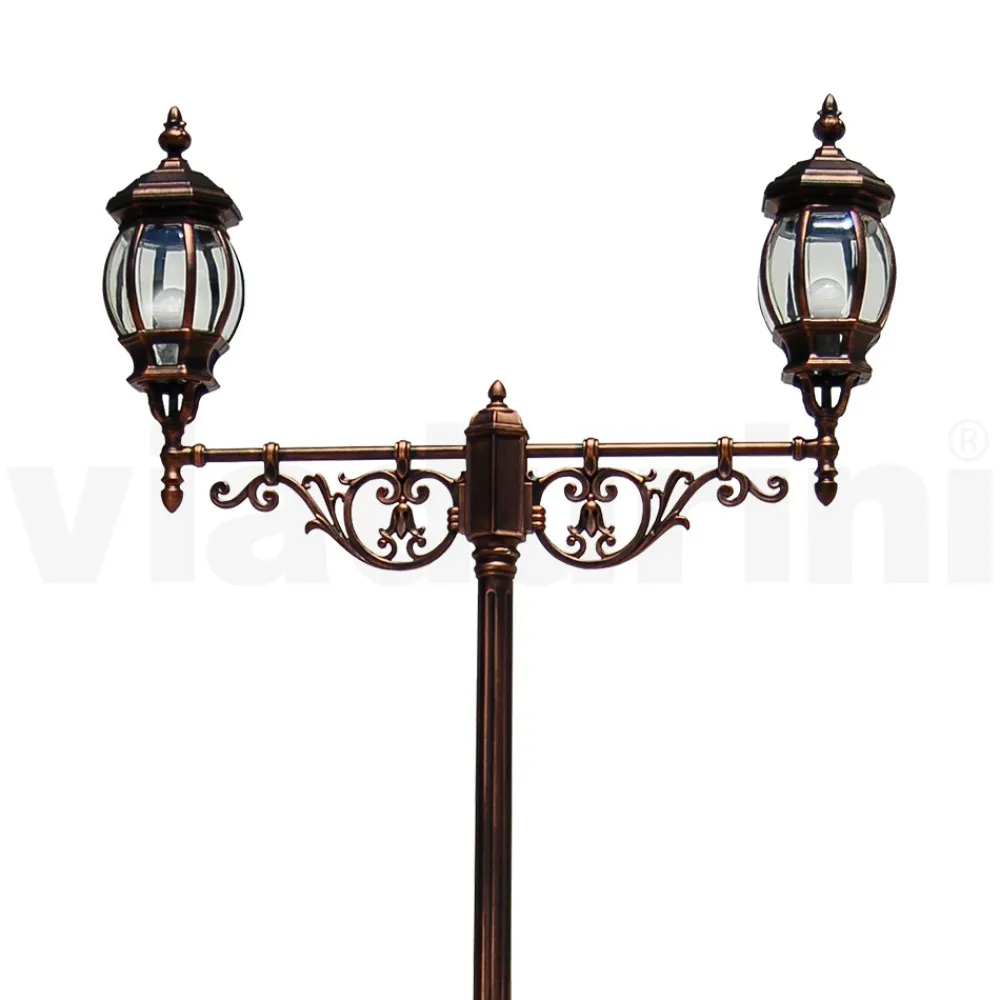 Straßenlaterne im Vintage-Stil mit 2 Lichtern und Aluminiumstruktur, hergestellt in Italien.