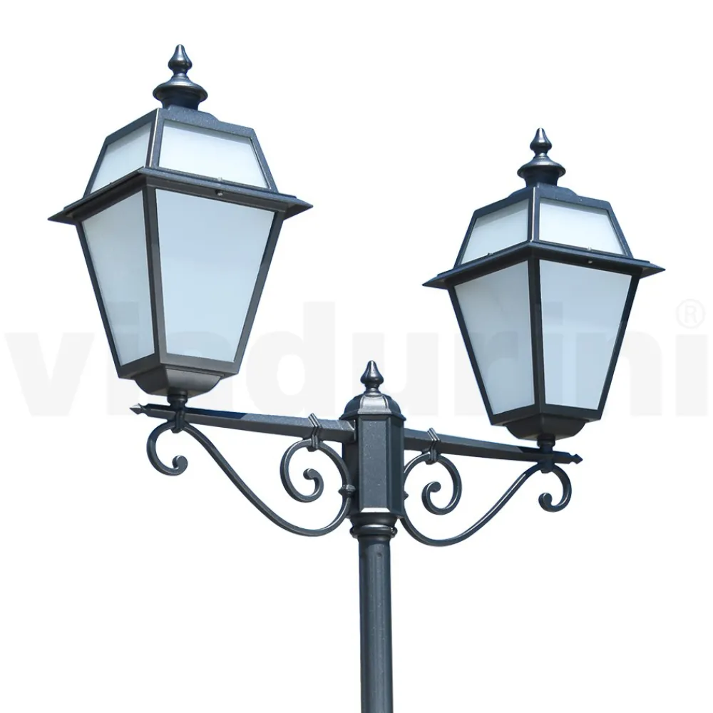 2-flammige Straßenlaterne aus Aluminium im Vintage-Stil mit Glasdiffusor, hergestellt in Italien.