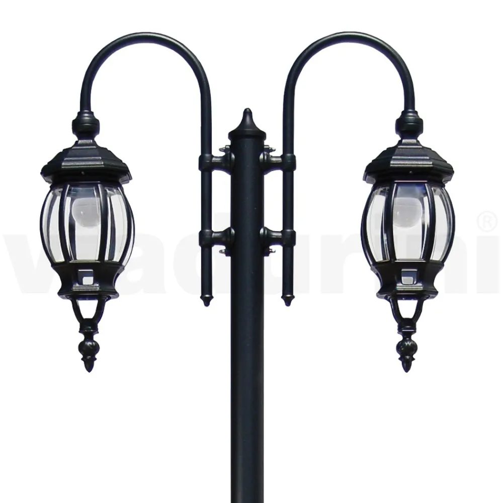 Vintage-Straßenlaterne mit 2 Lichtern aus anthrazitfarbenem Aluminium und Polycarbonat. Hergestellt in Italien.