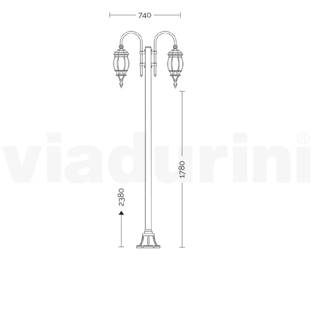 2-flammige Gartenlampe, 100 % Made in Italy, aus Aluminiumdruckguss in Anthrazitgrau mit transparentem Polycarbonat- Diffusor. Komplett mit Edelstahlschrauben. Ein Einrichtungsaccessoire für Außenbereiche mit starker Vintage-Persönlichkeit und romantischem Stil , der sich durch wunderbare, raffinierte und sorgfältig ausgearbeitete Details auszeichnet, die seine Eleganz unterstreichen. Ideal für Außenbereiche wie Gärten, Alleen, Gehwege oder gewerbliche Außenbereiche wie Bars und Restaurants.