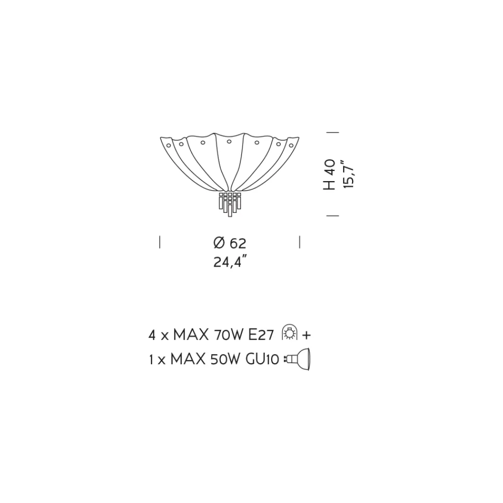 Leuchtmittel (nicht im Lieferumfang enthalten) : 5/7 x MAX 70 W E27 + 1 x MAX 50 W GU10