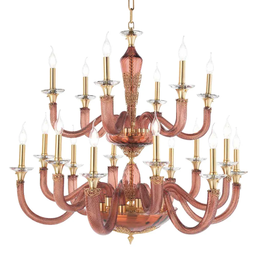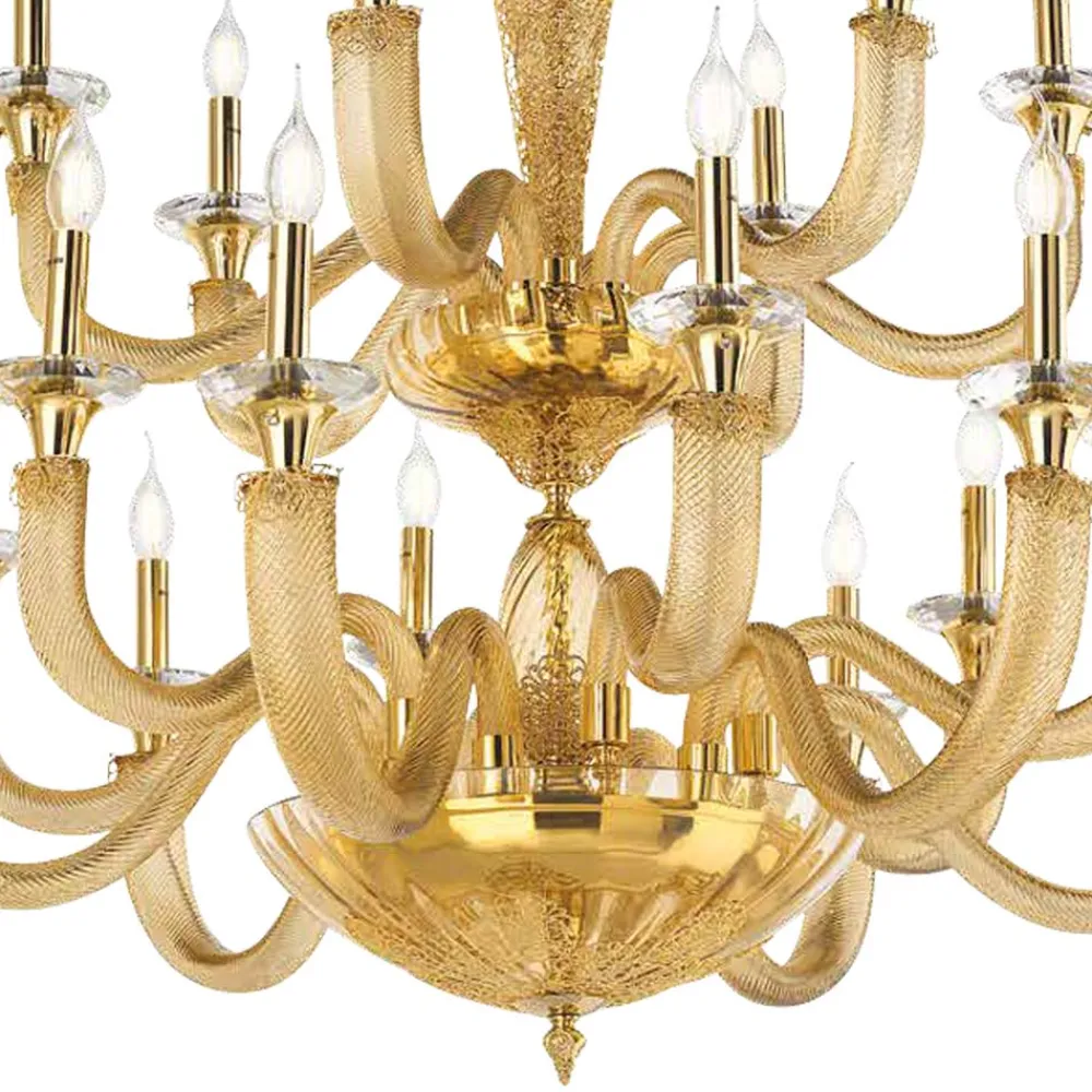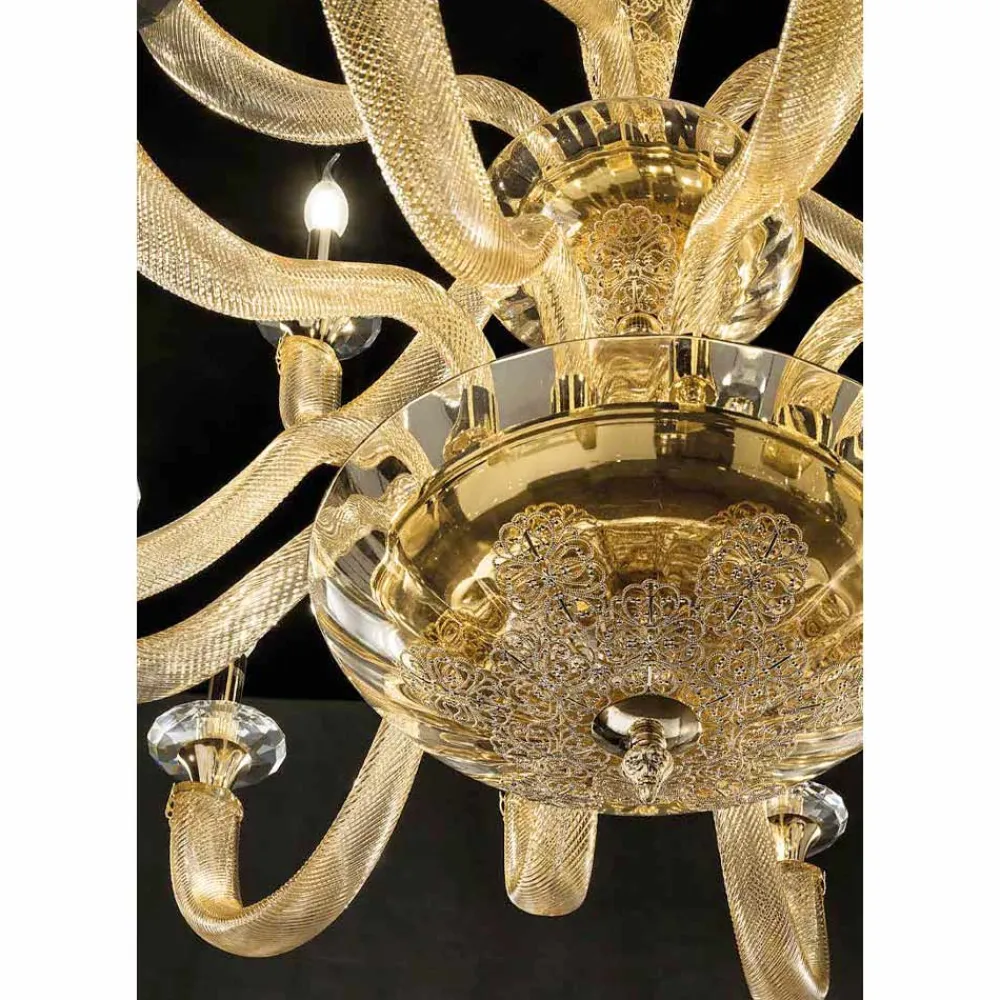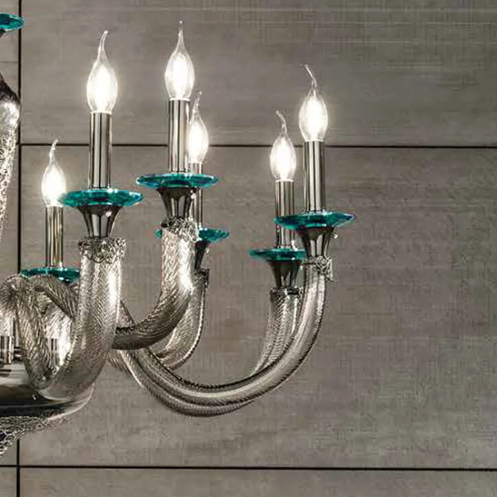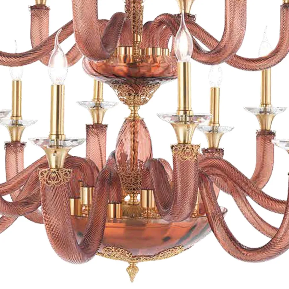 Der 18-flammige Kronleuchter ist ein luxuriöses Beleuchtungszubehör , das vollständig in Italien aus handgefertigtem Glas von höchster Qualität hergestellt wird und sich durch den besonderen ovalen Abschnitt der Arme auszeichnet.