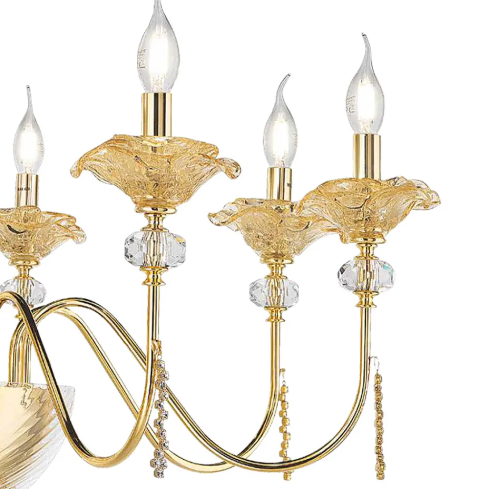 Der 8-flammige Kronleuchter ist ein luxuriöses Beleuchtungszubehör , das vollständig in Italien handgefertigt wird und eine Metallstruktur mit Silberschweißung aufweist.