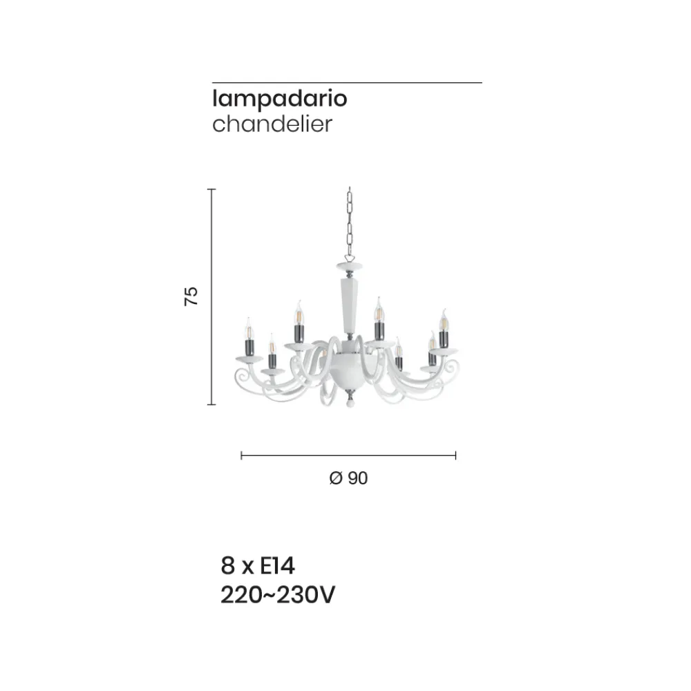 | Anschlusstyp und elektrische Leistung | 8 x E14 220–230 V |