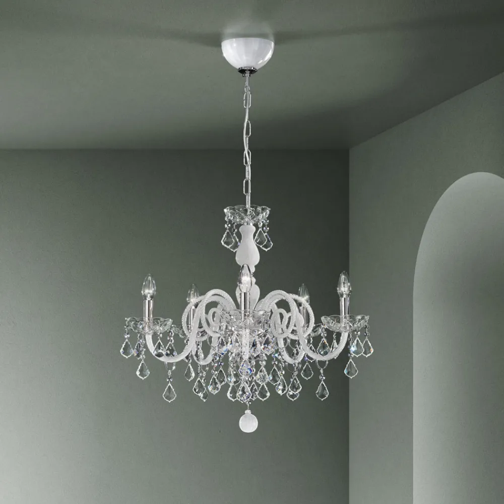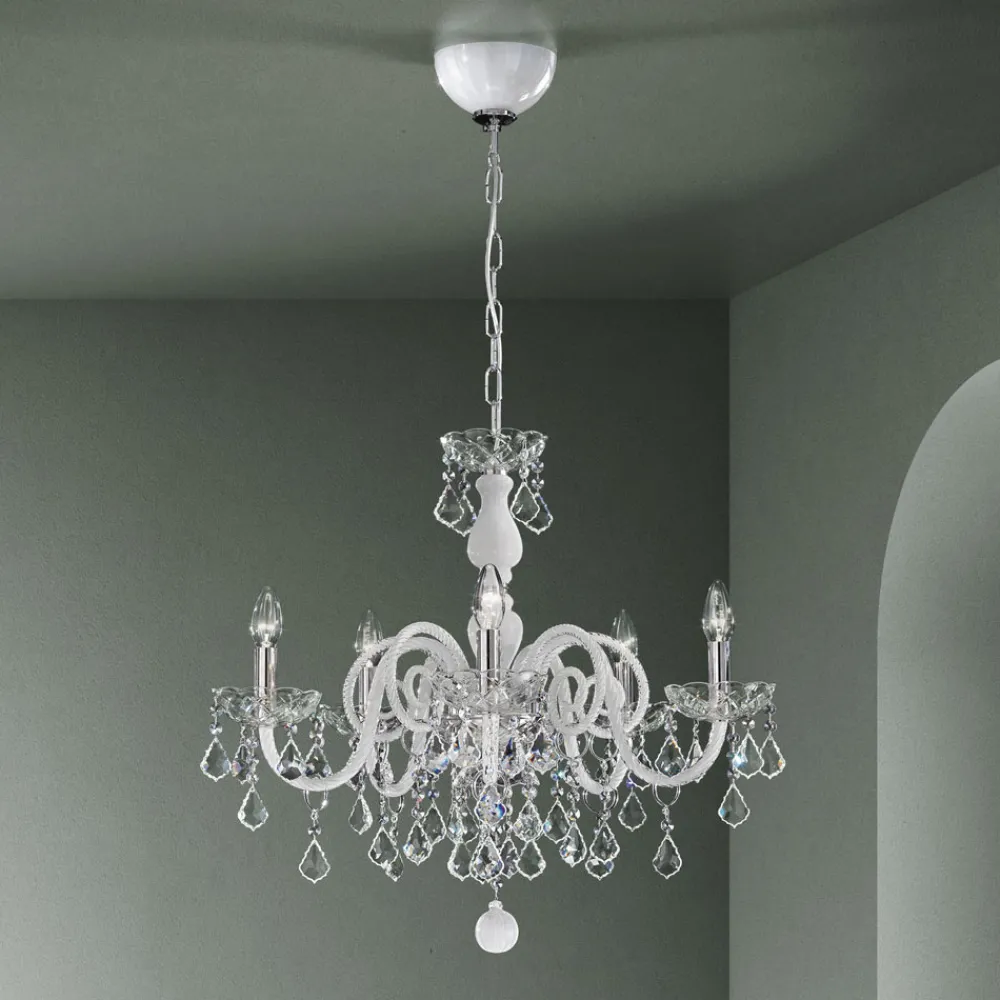Kronleuchter mit 5 Lichtern aus handgefertigtem venezianischem Glas.