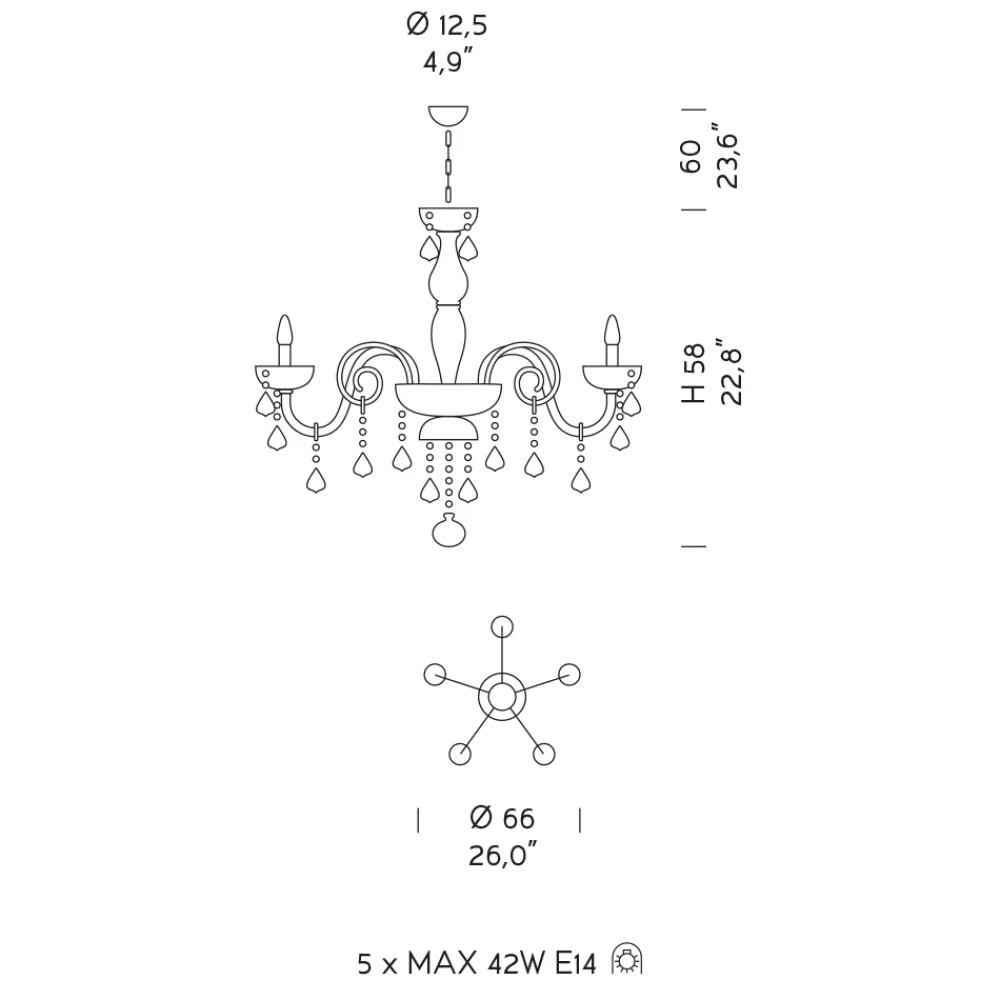Leuchtmittel (nicht enthalten) : 5 x MAX 42W E14