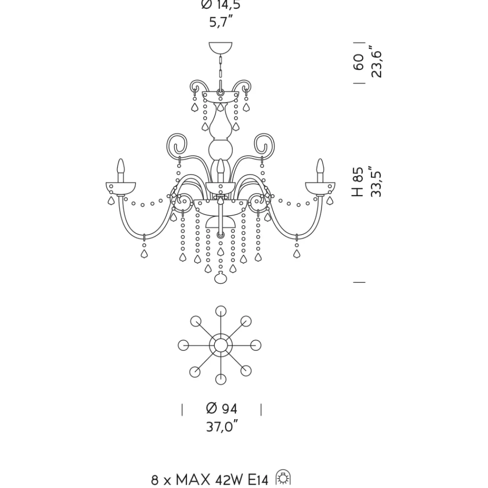 Leuchtmittel (nicht enthalten) : 8 x MAX 42W E14
