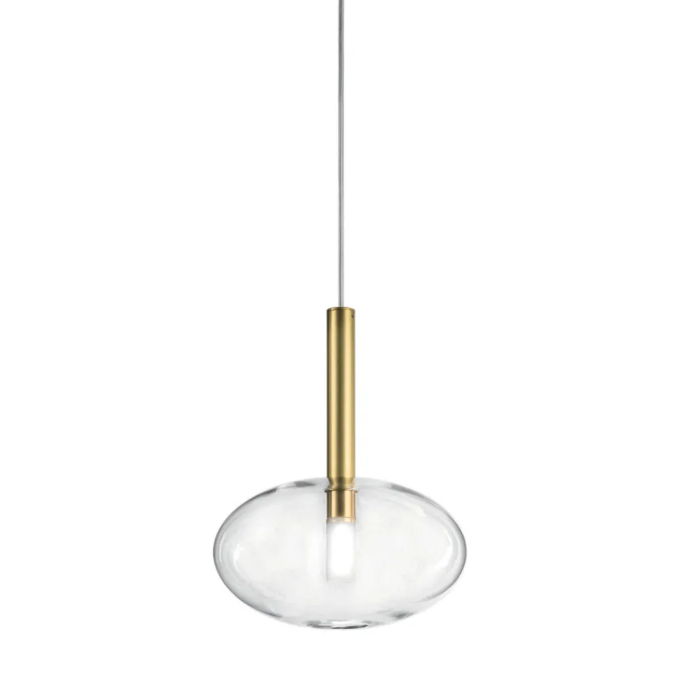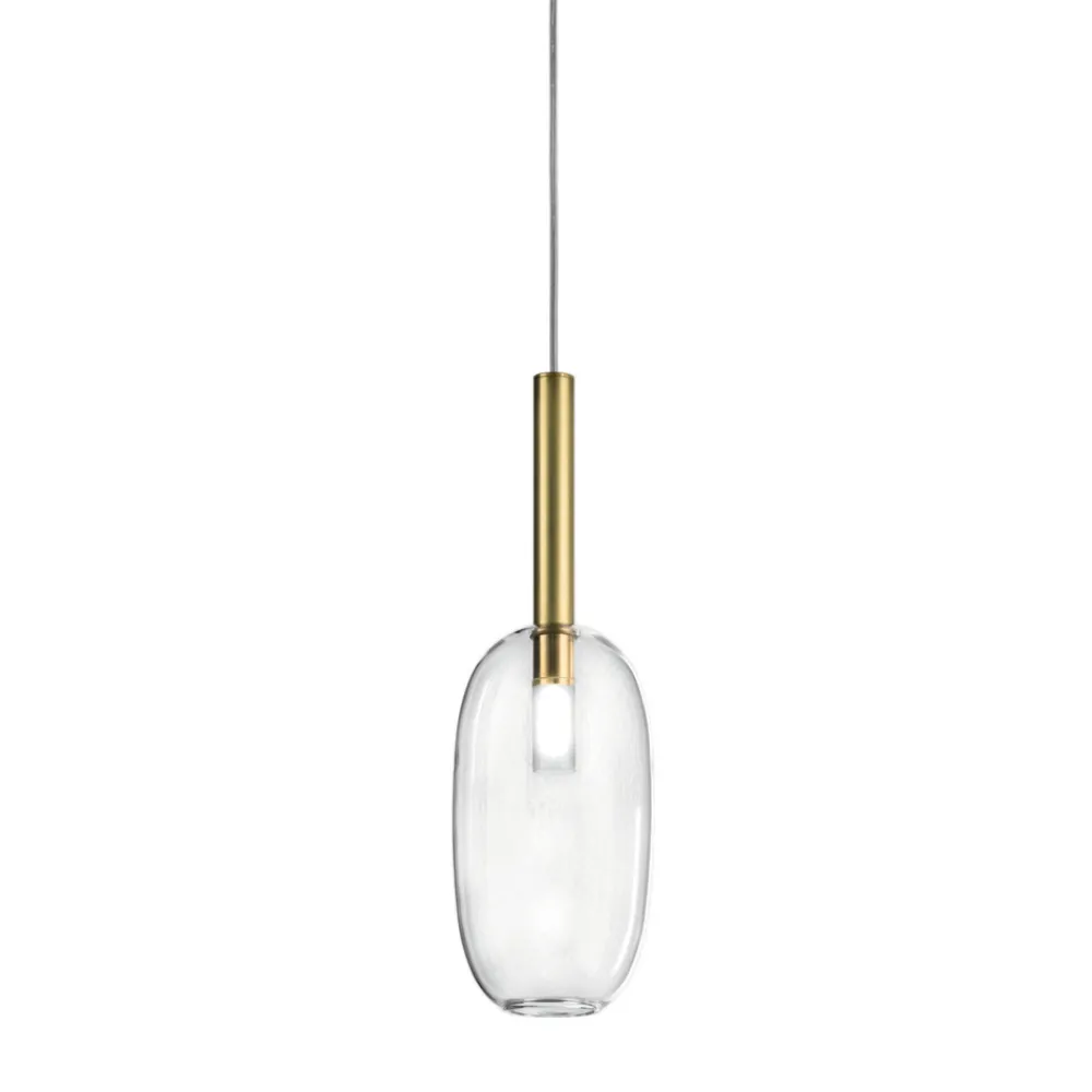 Pendelleuchte aus natürlichem Messing und transparentem Glas in verschiedenen Formen mit längenverstellbarem Kabel, vollständig in Italien hergestellt.