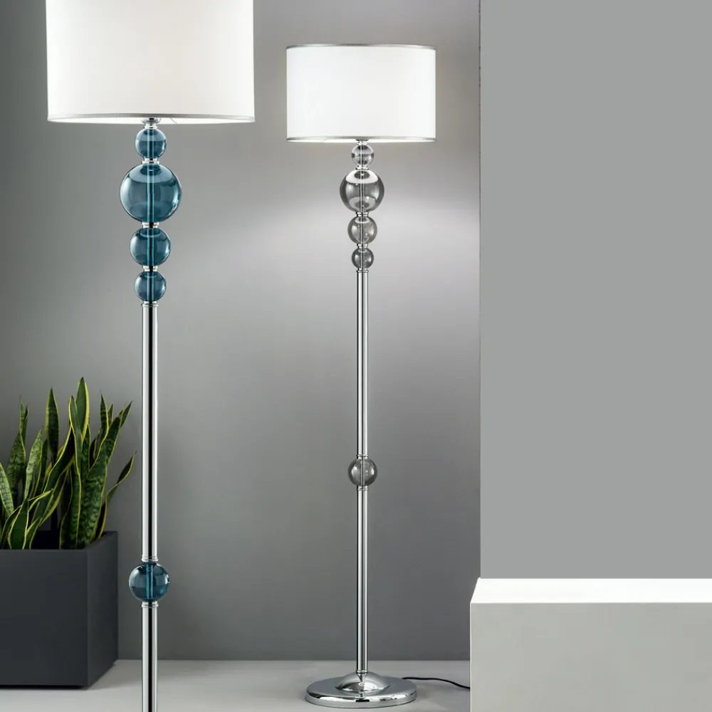 Klassische und elegante Stehlampe aus verchromtem Metall und handgefertigtem Glas, hergestellt in Italien.