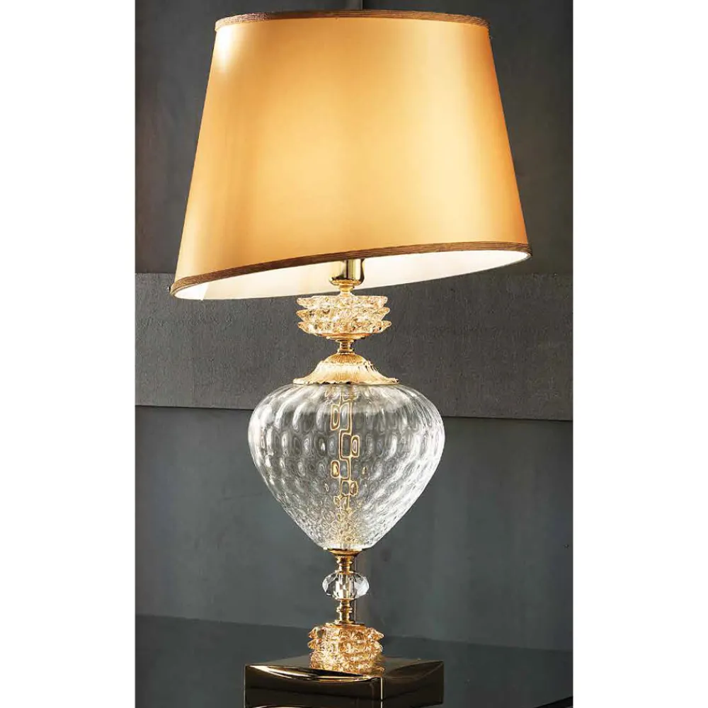 Die Tischlampe mit Lampenschirm ist ein luxuriöses Beleuchtungszubehör , das vollständig in Italien aus handgefertigtem Glas von höchster Qualität hergestellt wird.