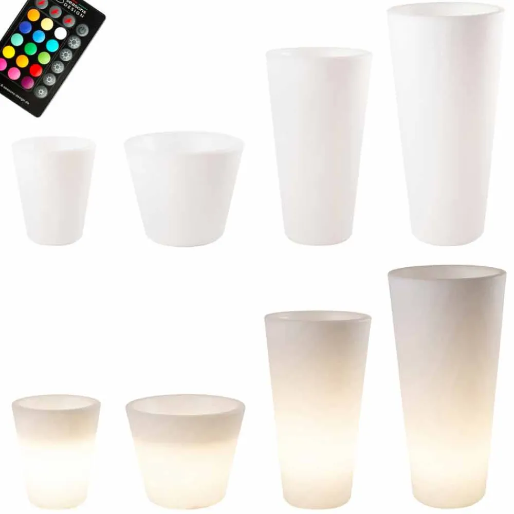 Ein vielseitiges und multifunktionales Produkt: Die leuchtende Vase in verschiedenen Größen und Farben trägt zu einer einladenden und modernen Umgebung bei.