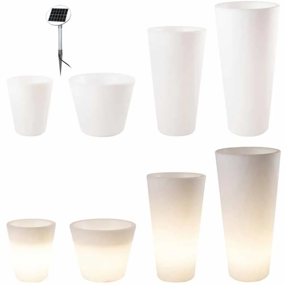 Weiße und moderne Design-Leuchtvase für drinnen oder draußen mit LED oder Solar in verschiedenen Größen.