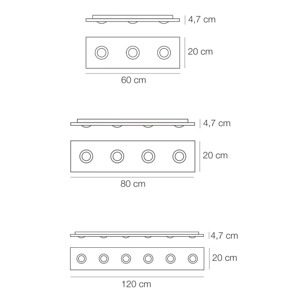 - Länge 60 cm x Tiefe 4,7 cm x Höhe 20 cm – 3-flammig – dimmbar