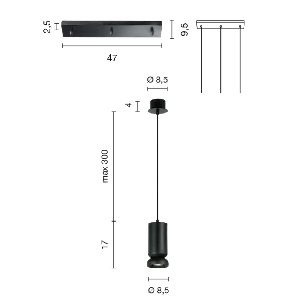 - Sockel in der Decke: Länge 47 cm x Tiefe 9,5 cm x Höhe 2,5 cm