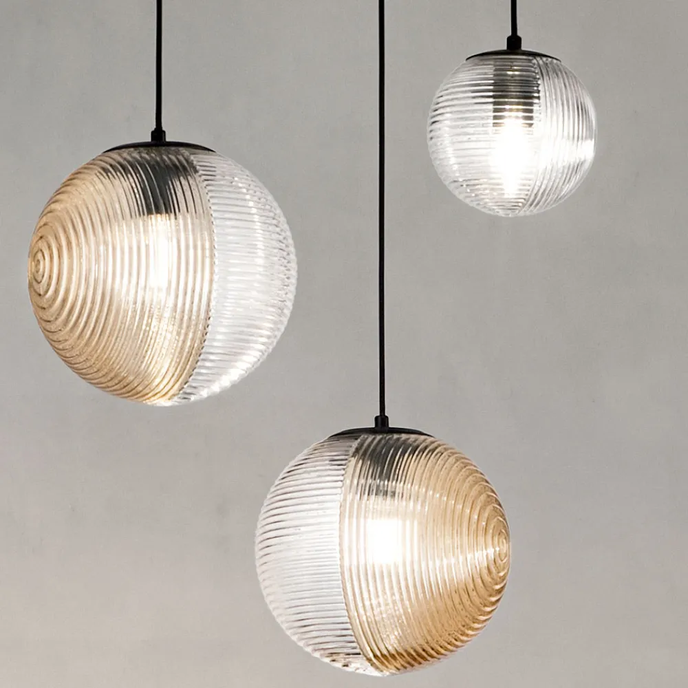 Tauchen Sie mit diesem Hängeleuchter in eine Atmosphäre moderner Eleganz ein, die jedem Raum einen Hauch von dezentem Luxus verleiht. Die leuchtenden Kugeln hängen in einem harmonischen Tanz aus Licht und Reflexionen , jede in mundgeblasenem Glas mit unterschiedlichen Oberflächen eingeschlossen, und reflektieren ein warmes und einladendes Licht .
