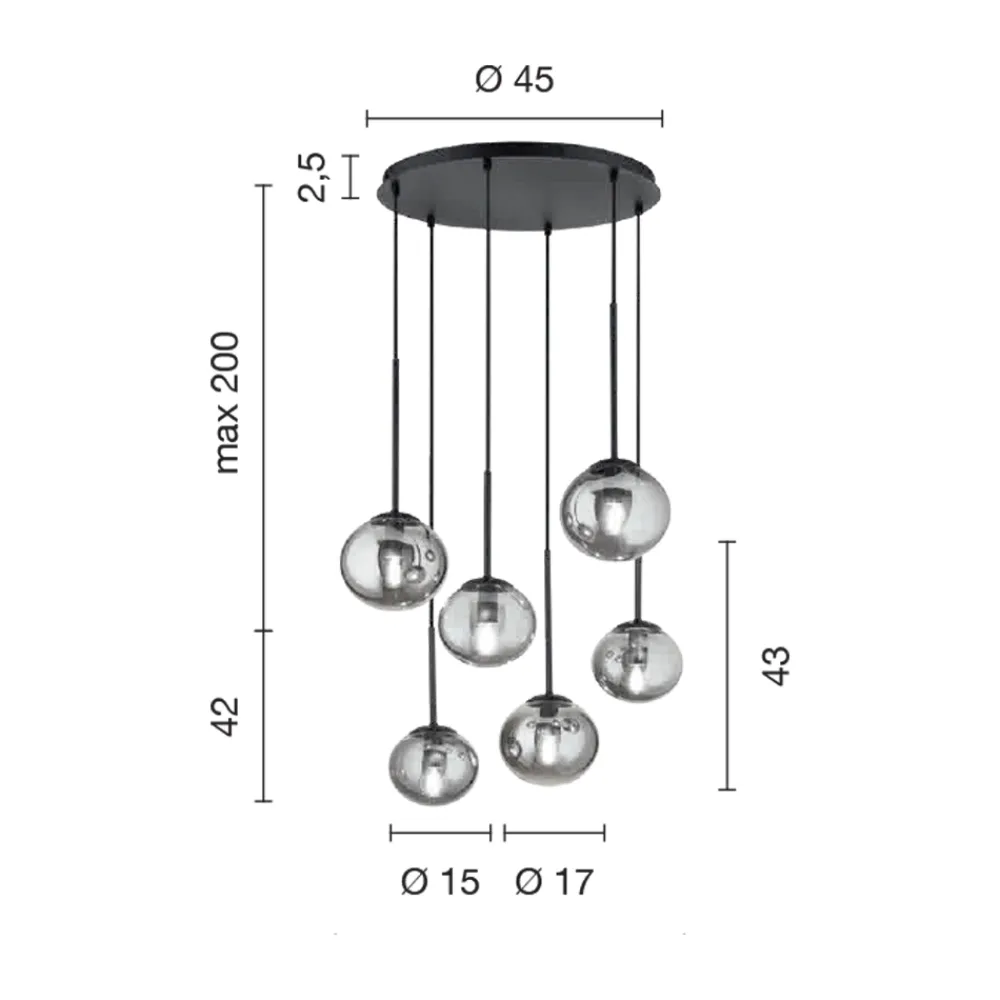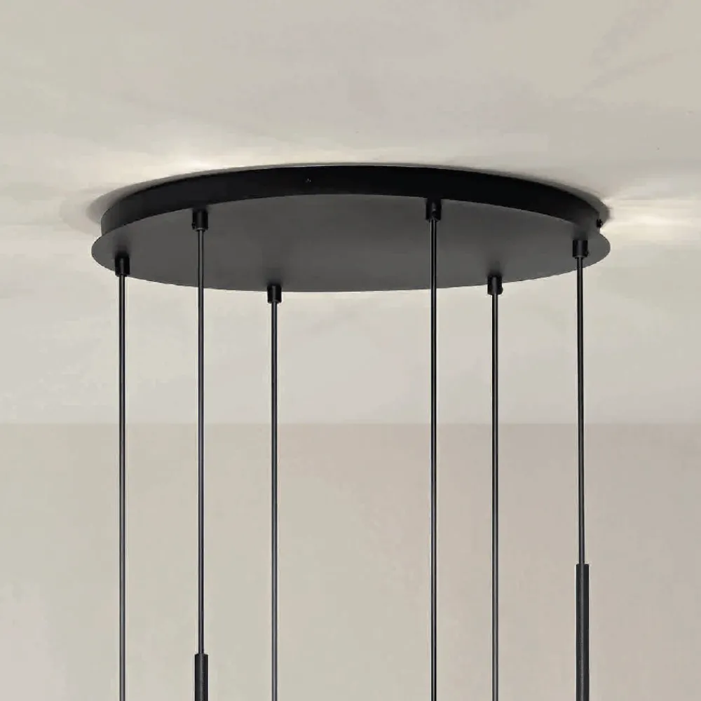 Komplett in Italien hergestellter Kronleuchter aus lackiertem Metall und schwarzem geblasenem Glas mit LED-Licht und längenverstellbaren Kabeln .