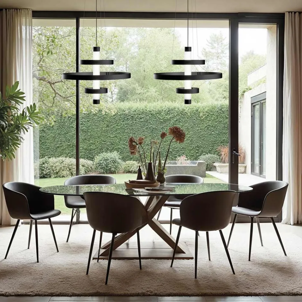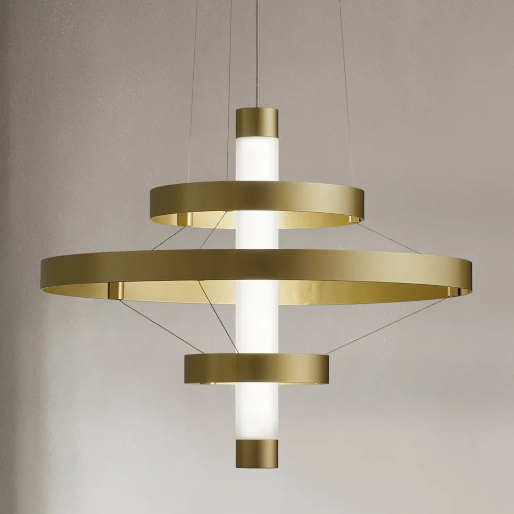Diese Pendelleuchte ist ein echter Protagonist in jedem Raum: eine leuchtende Skulptur, die den Blick auf sich zieht und der Umgebung Persönlichkeit und Prestige verleiht. Die Struktur besteht aus einer Reihe konzentrischer Aluminiumringe , die harmonisch um den zentralen Körper angeordnet sind und einen dynamischen, eleganten und dreidimensionalen visuellen Effekt erzeugen.