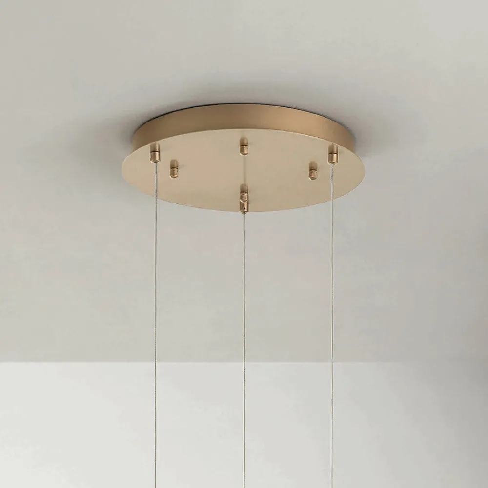 Komplett in Italien hergestellter Kronleuchter aus goldlackiertem Metall mit längenverstellbaren Kabeln und LED-Leuchten.