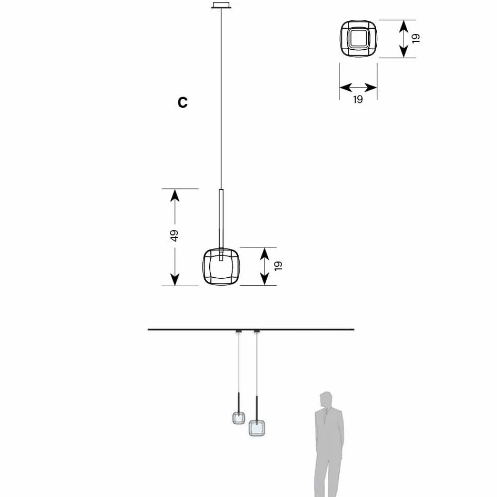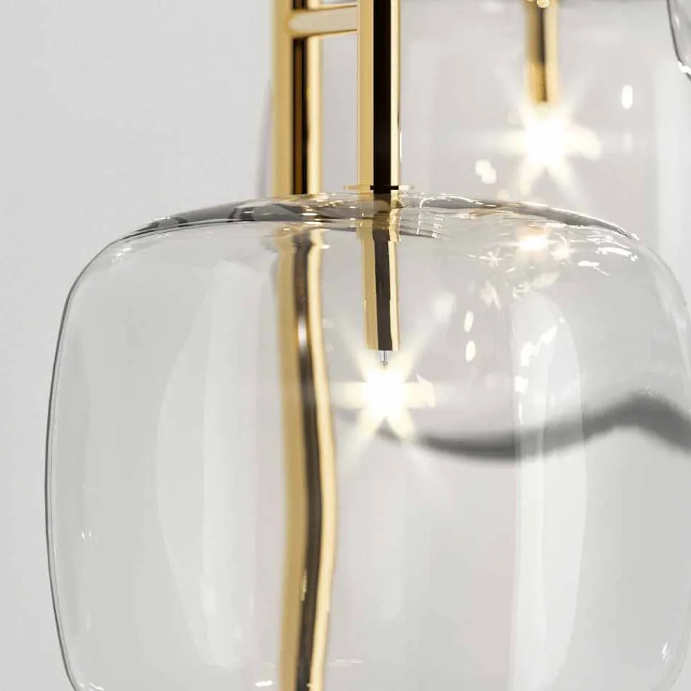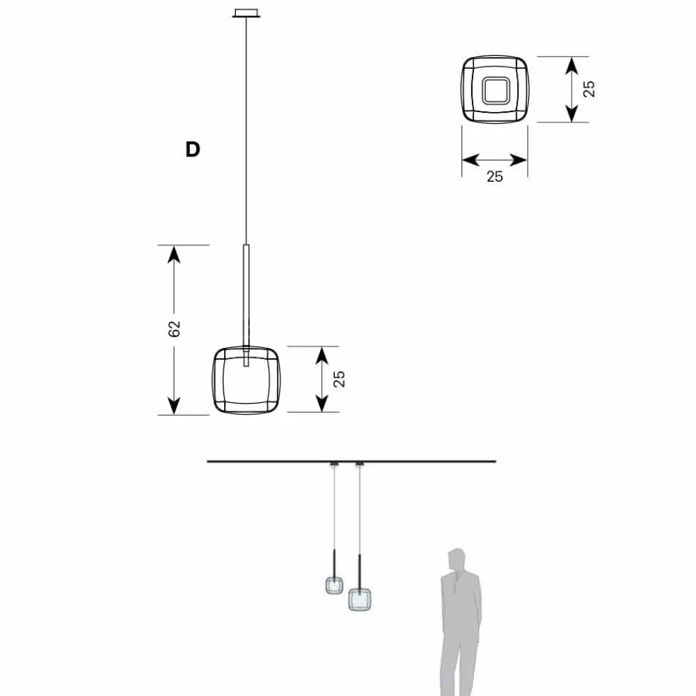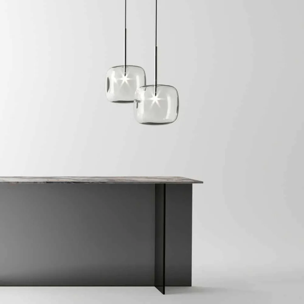 Diese Hängelampe wird in Italien hergestellt und repräsentiert eine äußerst elegante und wirkungsvolle Beleuchtungsidee, die dazu beiträgt, eine Umgebung mit einer raffinierten und modernen Atmosphäre zu schaffen. Die polierte Metallstruktur enthält einen abgerundeten Würfel aus transparentem geblasenem Pyrexglas . Ideal für mehrere Installationen auch in unterschiedlichen Höhen, wodurch das Produktdesign bewegt und verfeinert wird . G4 3000K LED-Leuchte und dimmbare Lampe.