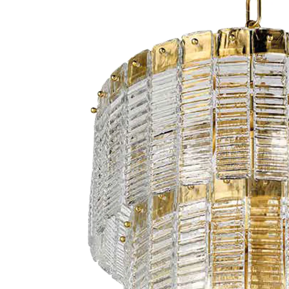 Hängelampe 14 Lichter aus handgefertigtem Glas mit geometrischer Dekoration, italienischer Luxus.
