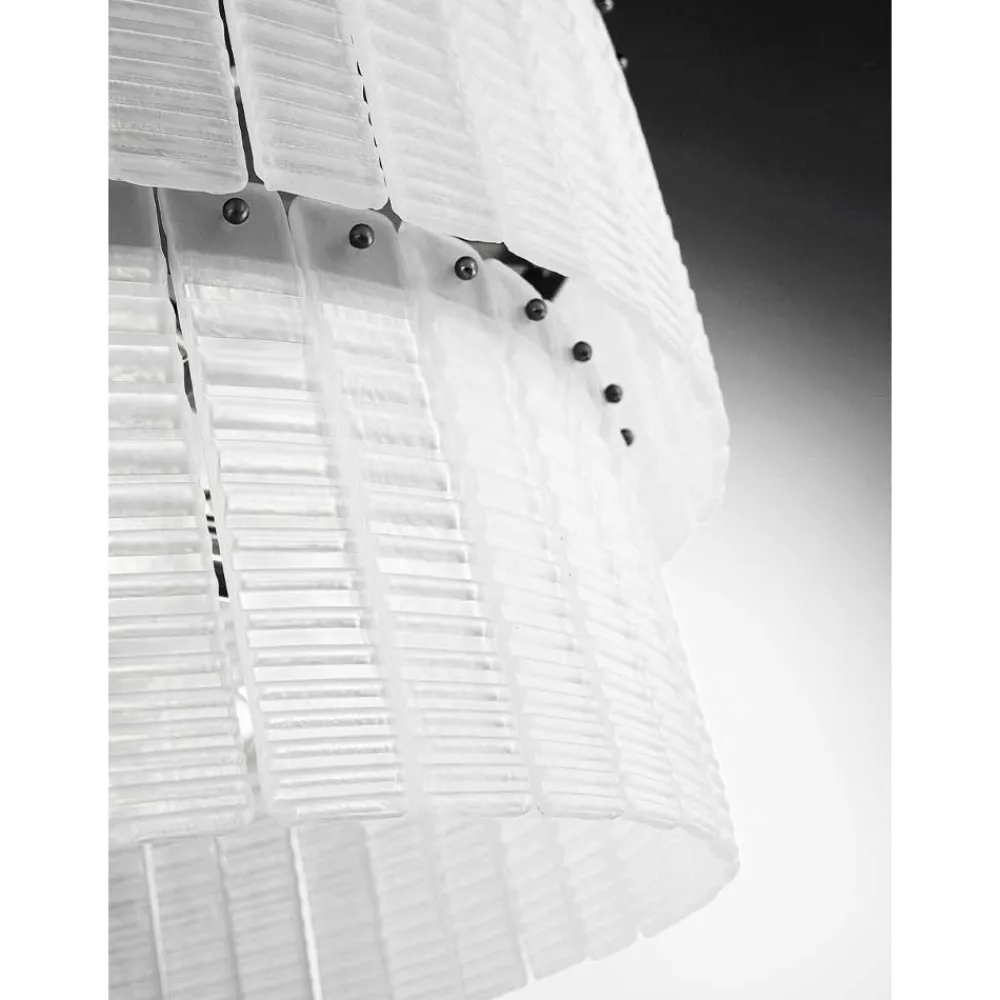 Die 14- flammige Pendelleuchte mit einem majestätischen und raffinierten Design ist ein luxuriöses Beleuchtungszubehör , das vollständig in Italien aus handgefertigten Glasmodulen von höchster Qualität mit geometrischer Dekoration handgefertigt wird.