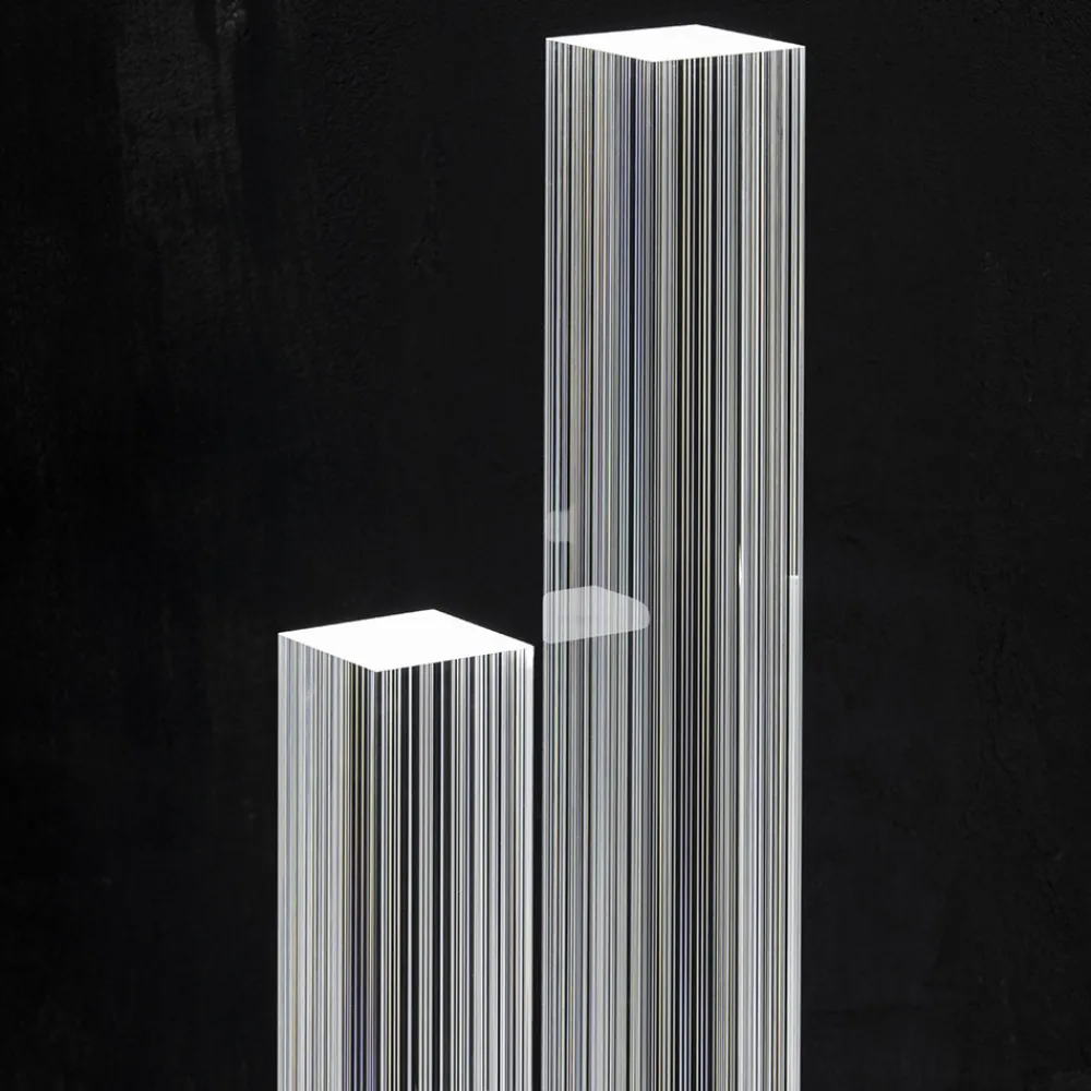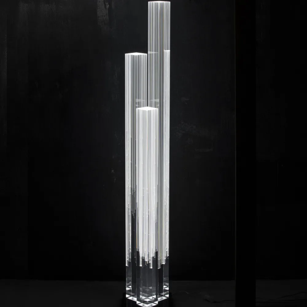 Triptychon LED-Stehlampe aus lasergraviertem Acrylkristall, hergestellt in Italien.