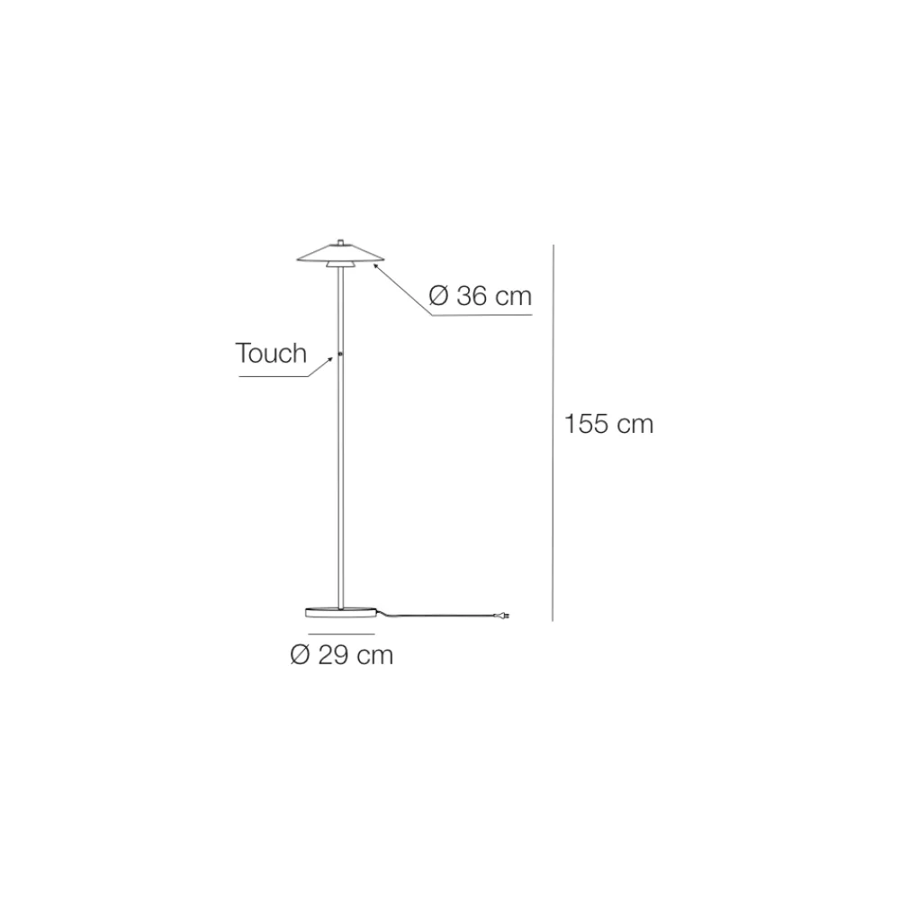 Diese Stehleuchte mit Touch-Bedienung schafft die perfekte Balance zwischen schlichtem Design und moderner Technologie und ist für alle gedacht, die eine elegante und funktionale Raumbeleuchtung suchen. Die schlanke, minimalistische Struktur verschmilzt mit einem umgedrehten kegelförmigen Lampenschirm und sorgt so für eine schlichte und dennoch raffinierte Optik.
