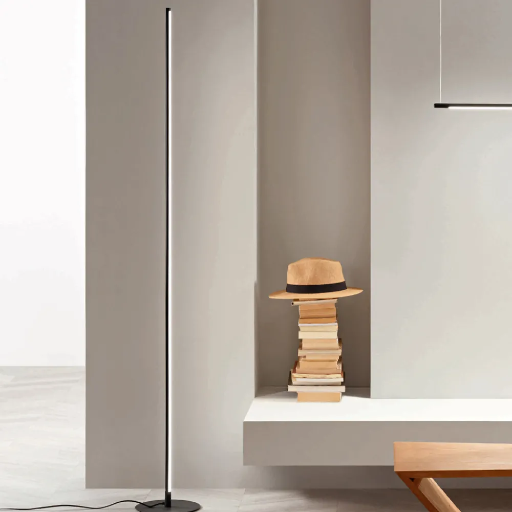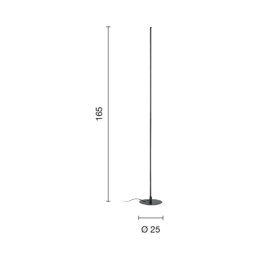 Komplett in Italien hergestellte Stehleuchte aus schwarz lackiertem Metall mit dimmbarem LED- Licht .