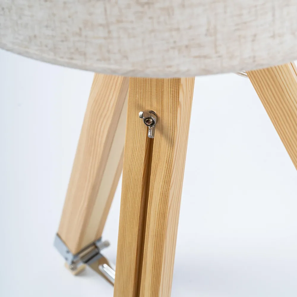 Stehlampe mit 3-Fuß-Struktur aus Holz und Lampenschirm aus hellgrauem Segeltuch . Eine originelle und einzigartige Einrichtungsidee, ideal, um Ihre Wohnräume durch einen Hauch von Kreativität und Charakter zu bereichern. Die perfekte Kombination der für seine Realisierung ausgewählten Materialien schafft eine exklusive und raffinierte Harmonie , die die umgebenden Möbel zu einem Ergebnis mit starker visueller Wirkung vervollständigt.
