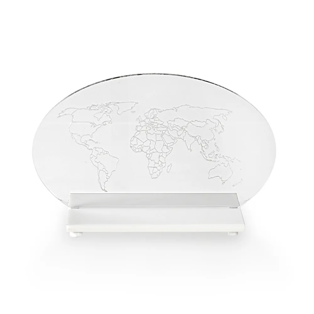 Diese aus 100 % reinem Polymer-PMMA-Plexiglas geschmiedete Lampe ist nicht nur ein Beispiel für Brillanz, sondern auch ein Beweis für Qualität. Wenn der Acrylkristall eingeschaltet ist, verstärkt er lediglich die bezaubernde Form des Globus und schafft eine warme und einladende Atmosphäre mit einem natürlichen Licht von 4000 °K , das Ihnen das Gefühl gibt, die Welt zum Greifen nah zu haben.