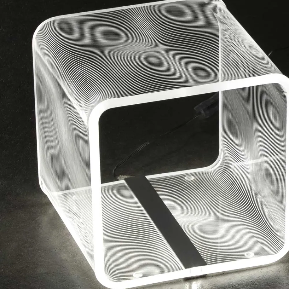 Quadratische LED-Streifen-Tischlampe aus transparentem Acryl 2 Größen, hergestellt in Italien.