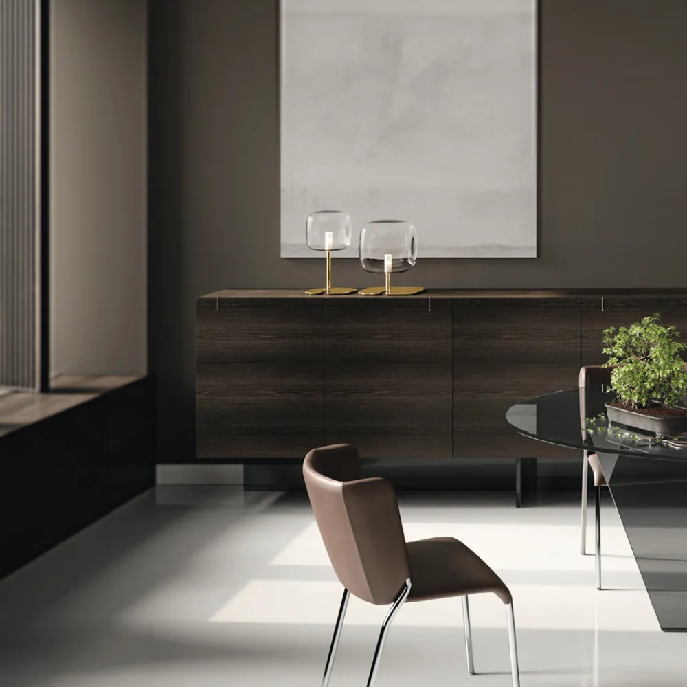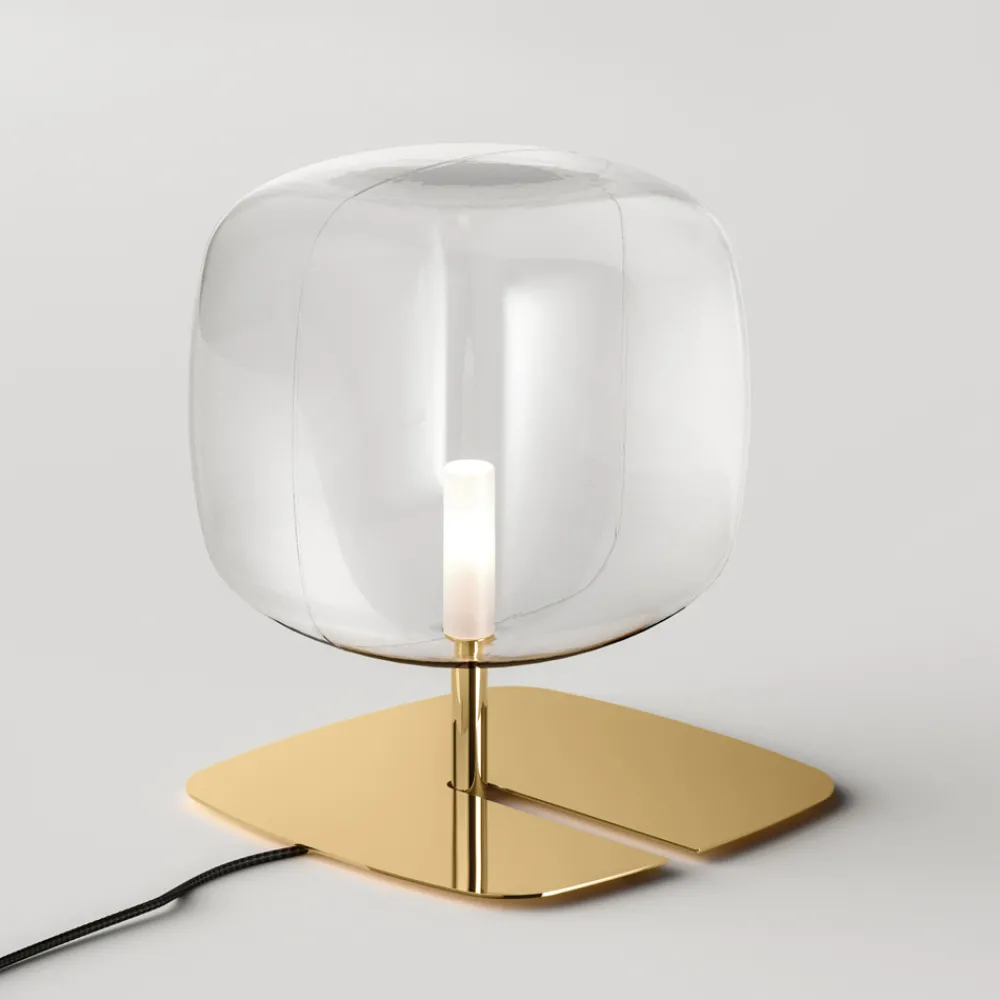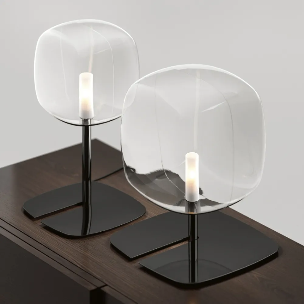 LED-Tischlampe aus transparentem Glas und Metall Made in Italy.